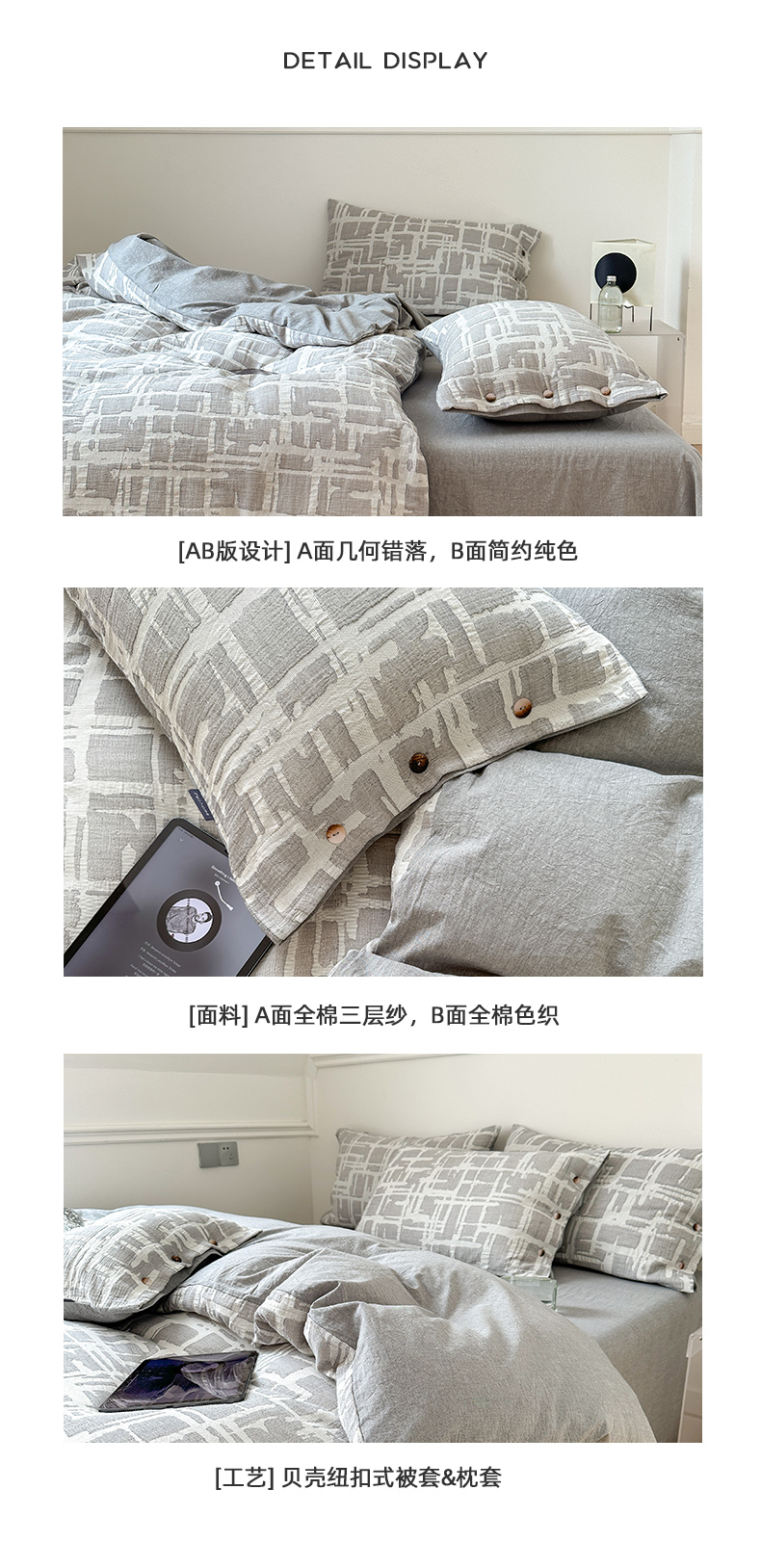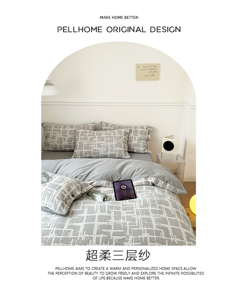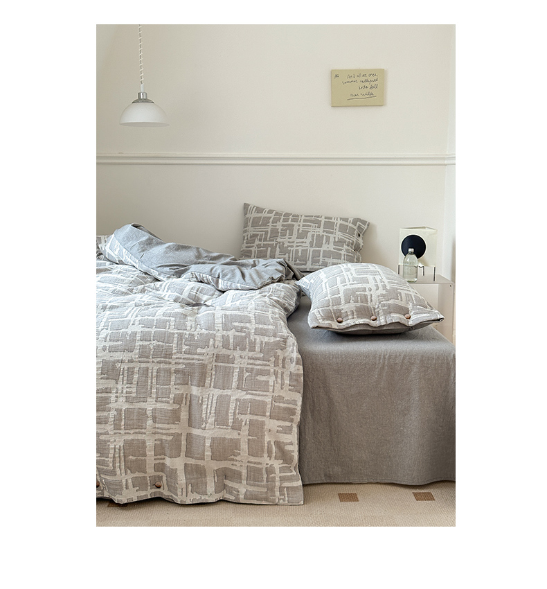 当前位置: 91家纺网 > 商品网购 > 床品套件 > 四件套 > 其它四件套 > 贝尔 PELLHOME 欧几里得全棉简约北欧几何空气提花三层纱四件套纯色系(可抖音代发) 欧几里得-灰