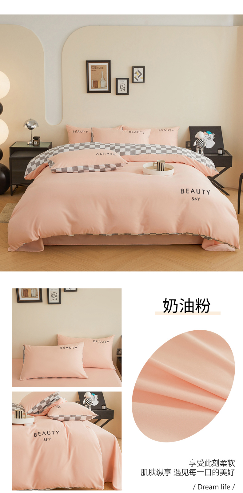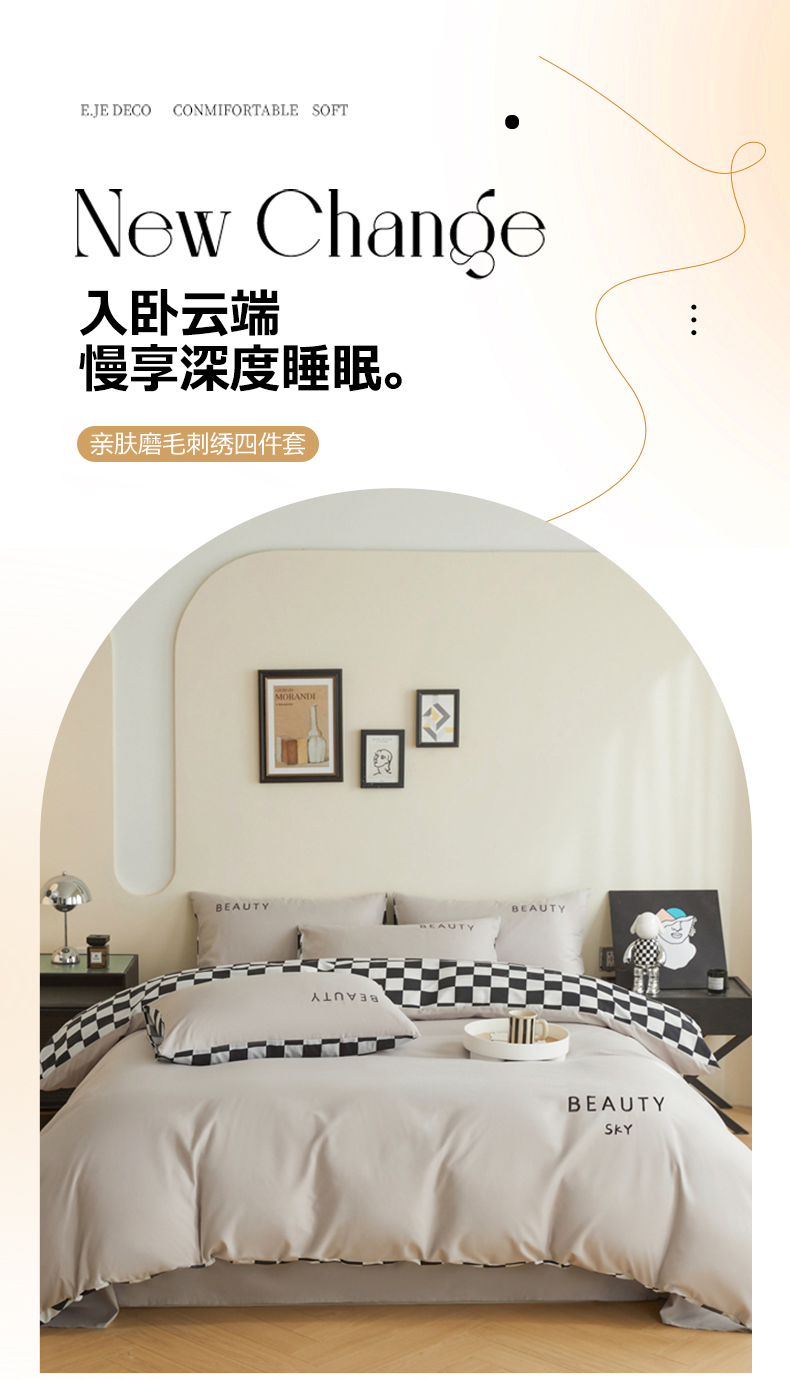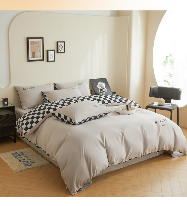 (总)麦空家居 2025新款水洗棉刺绣四件套-布丁(棋盘格),牛油果,奶昔白,爱马橙,宾利蓝,绅士灰,高山灰,奶油粉,天空兰