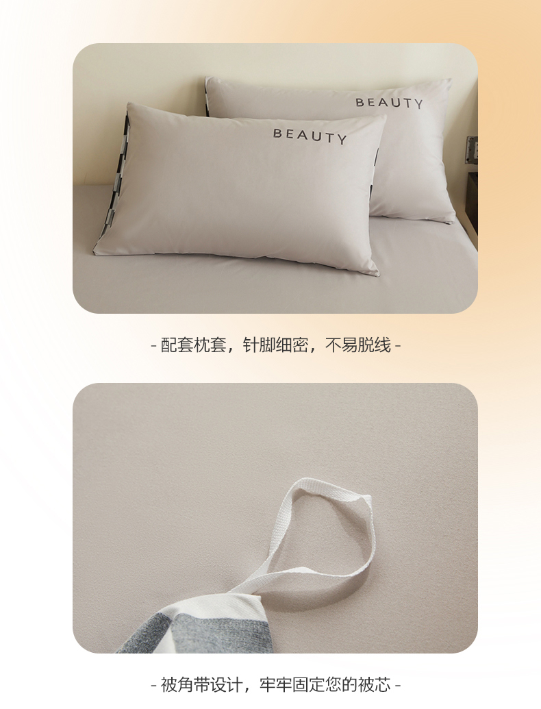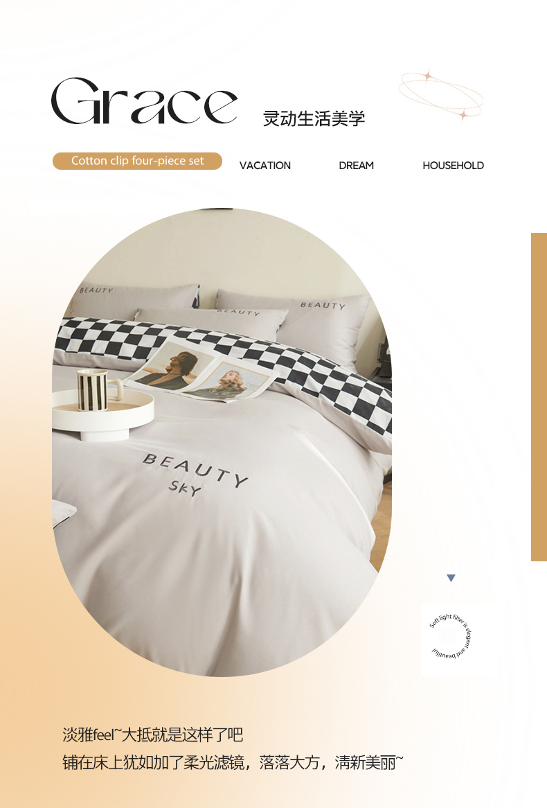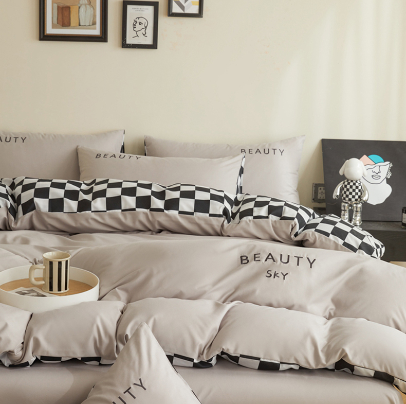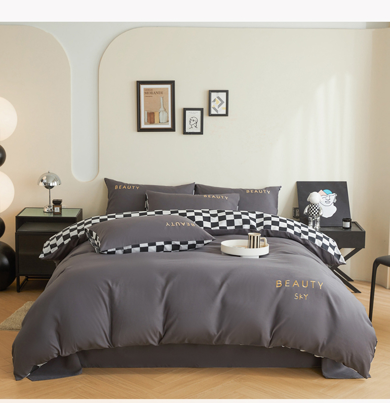 麦空家居 2025新款水洗棉刺绣四件套-布丁(棋盘格) 高山灰