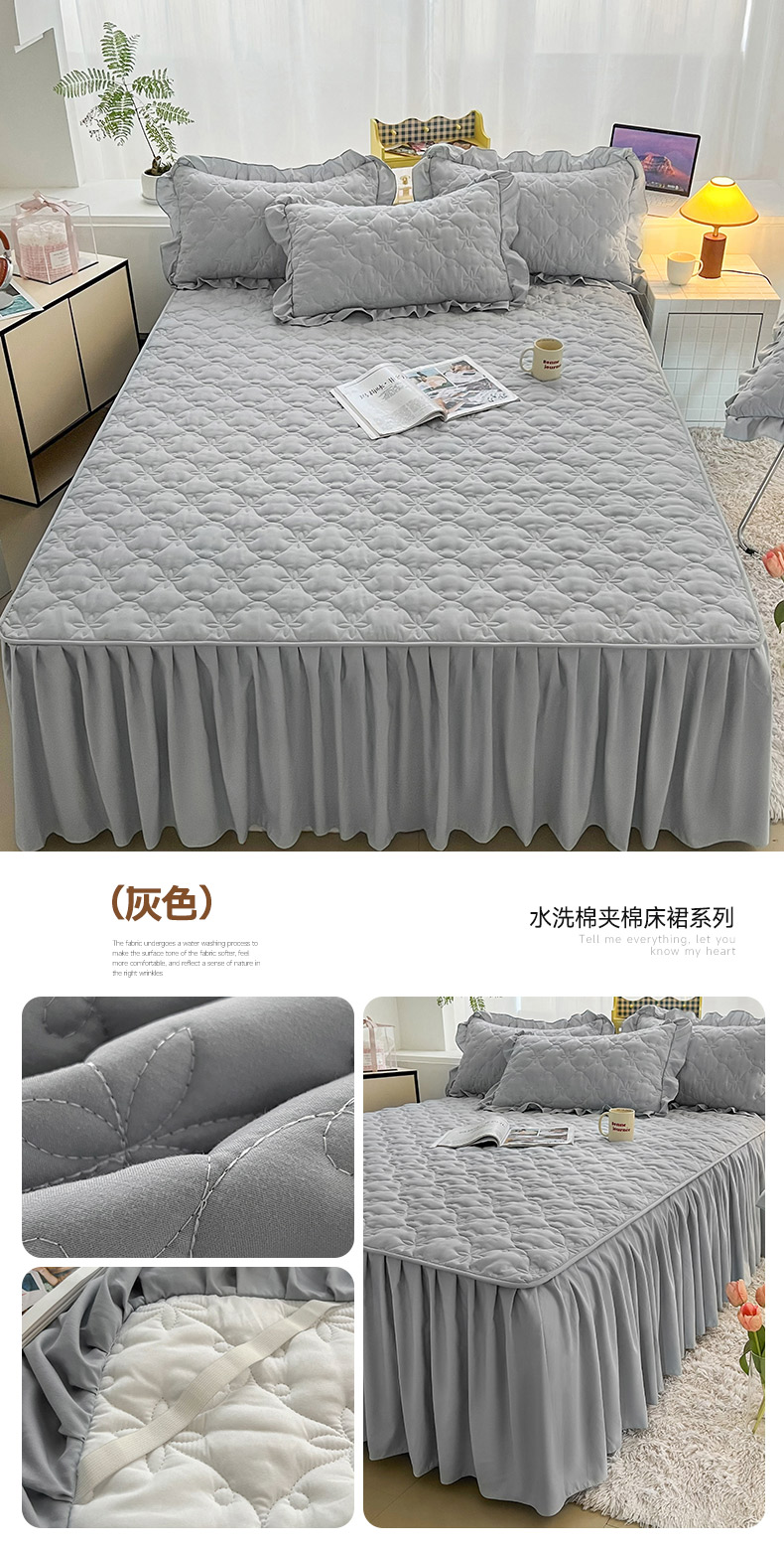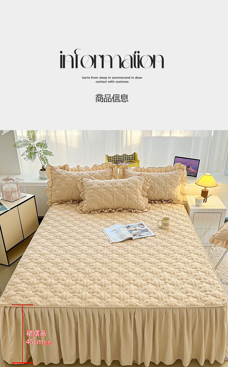 商品名称:鼎丰家纺 2025新款纯色高克重水洗棉夹棉床裙-曼可 曼可-浅蓝