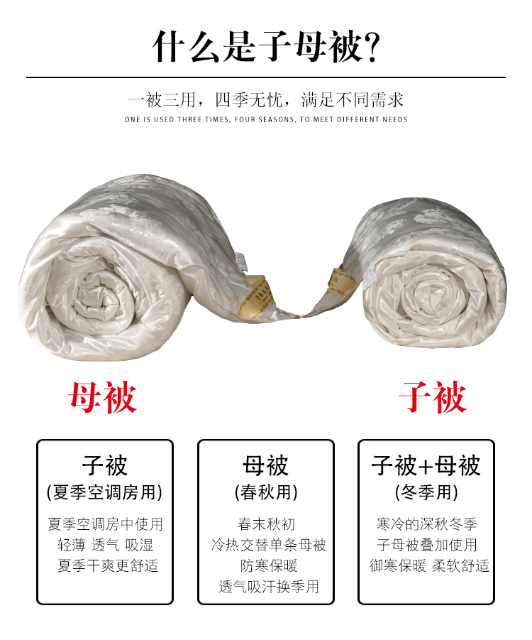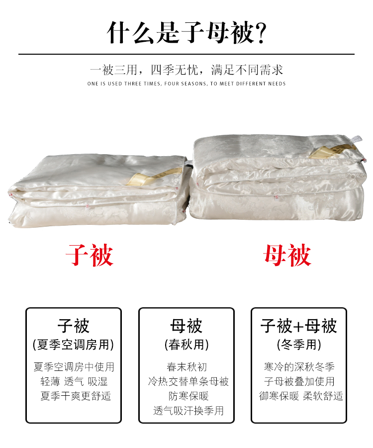 (总)越宏顺 2025新款被子冬被被芯拉链款子母被,白色,大红,粉色,灰色,玉色