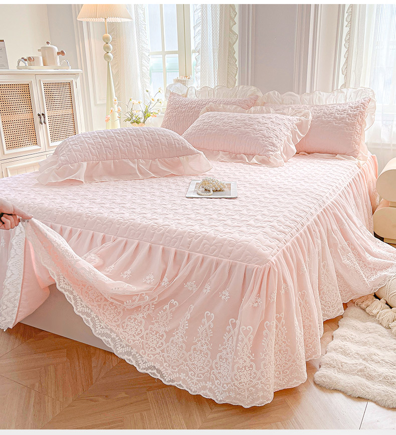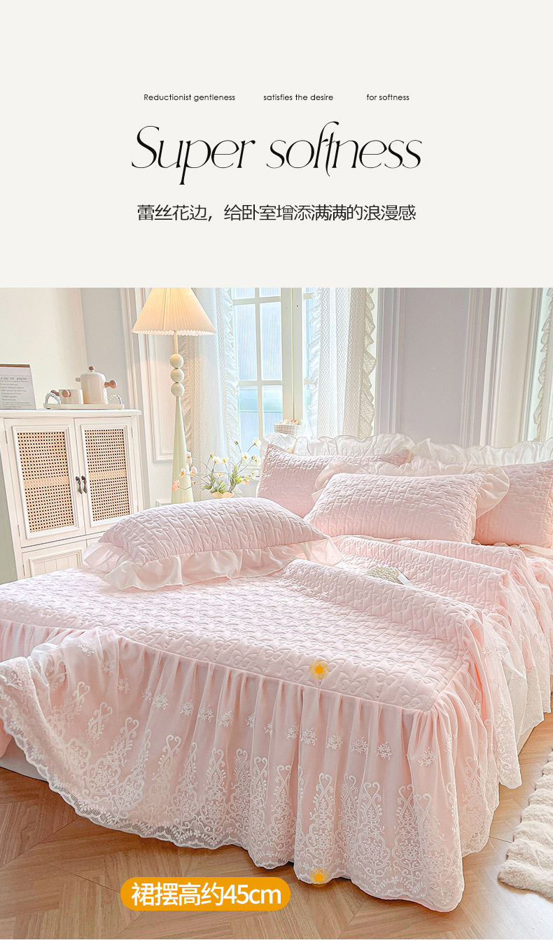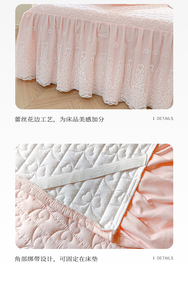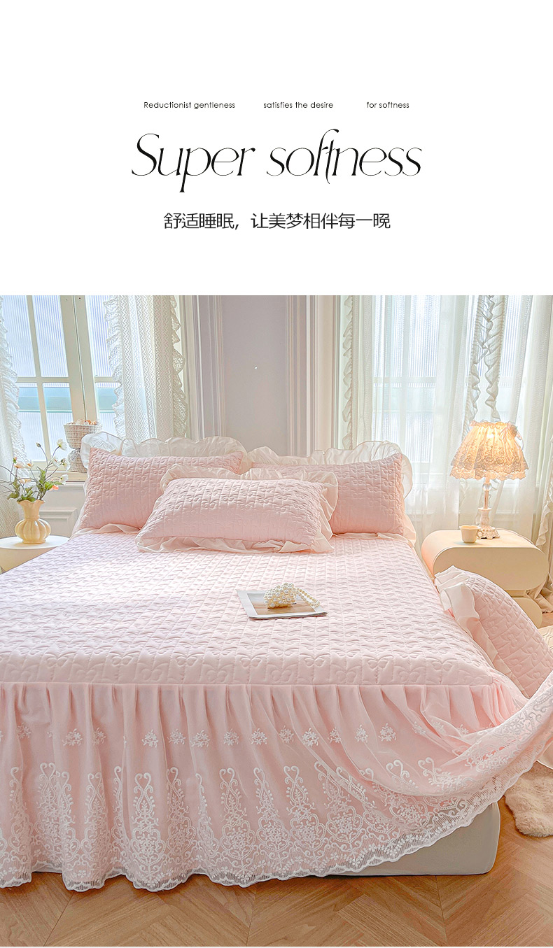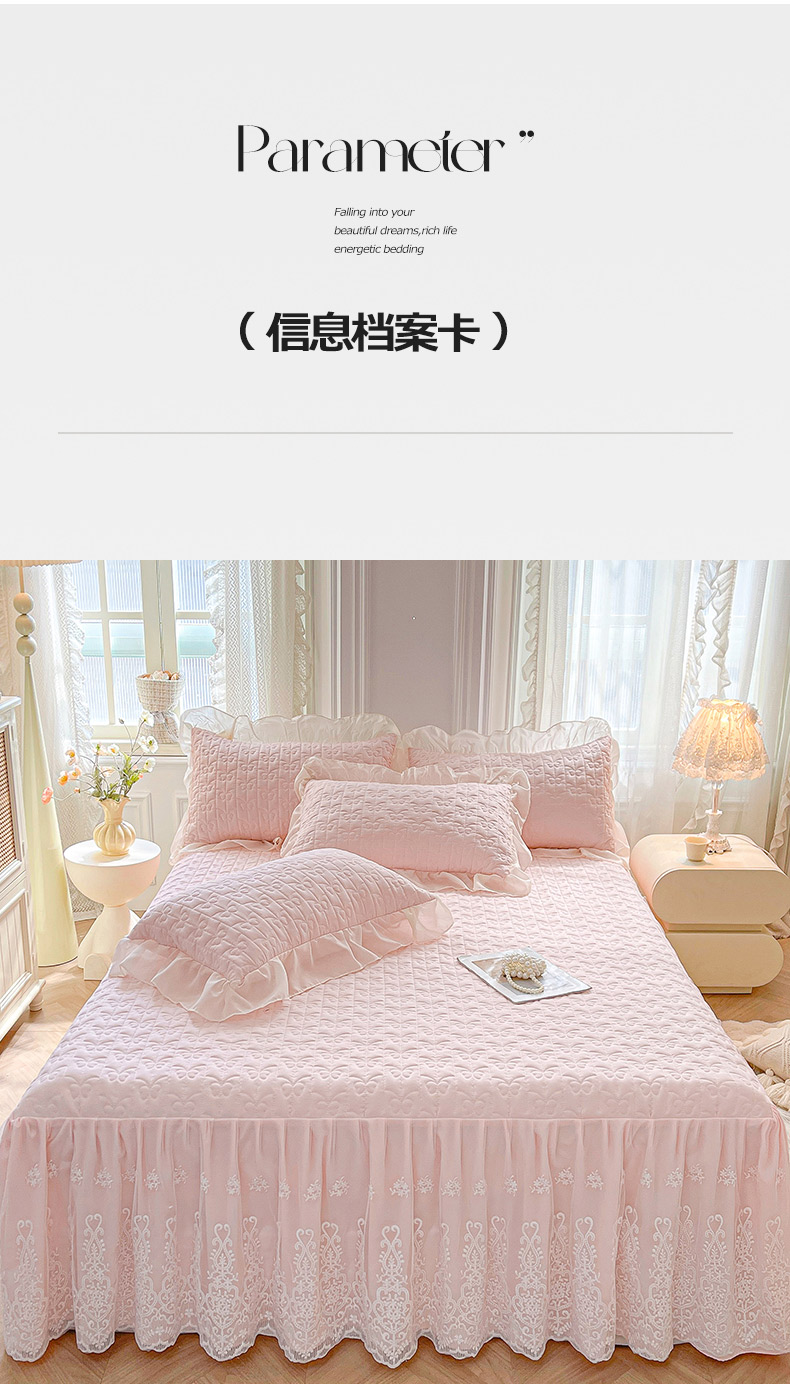 商品名称:鼎丰家纺 2025新款蕾丝夹棉床裙-洛可可系列 洛可可-粉