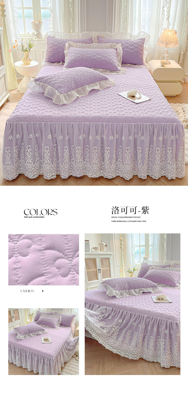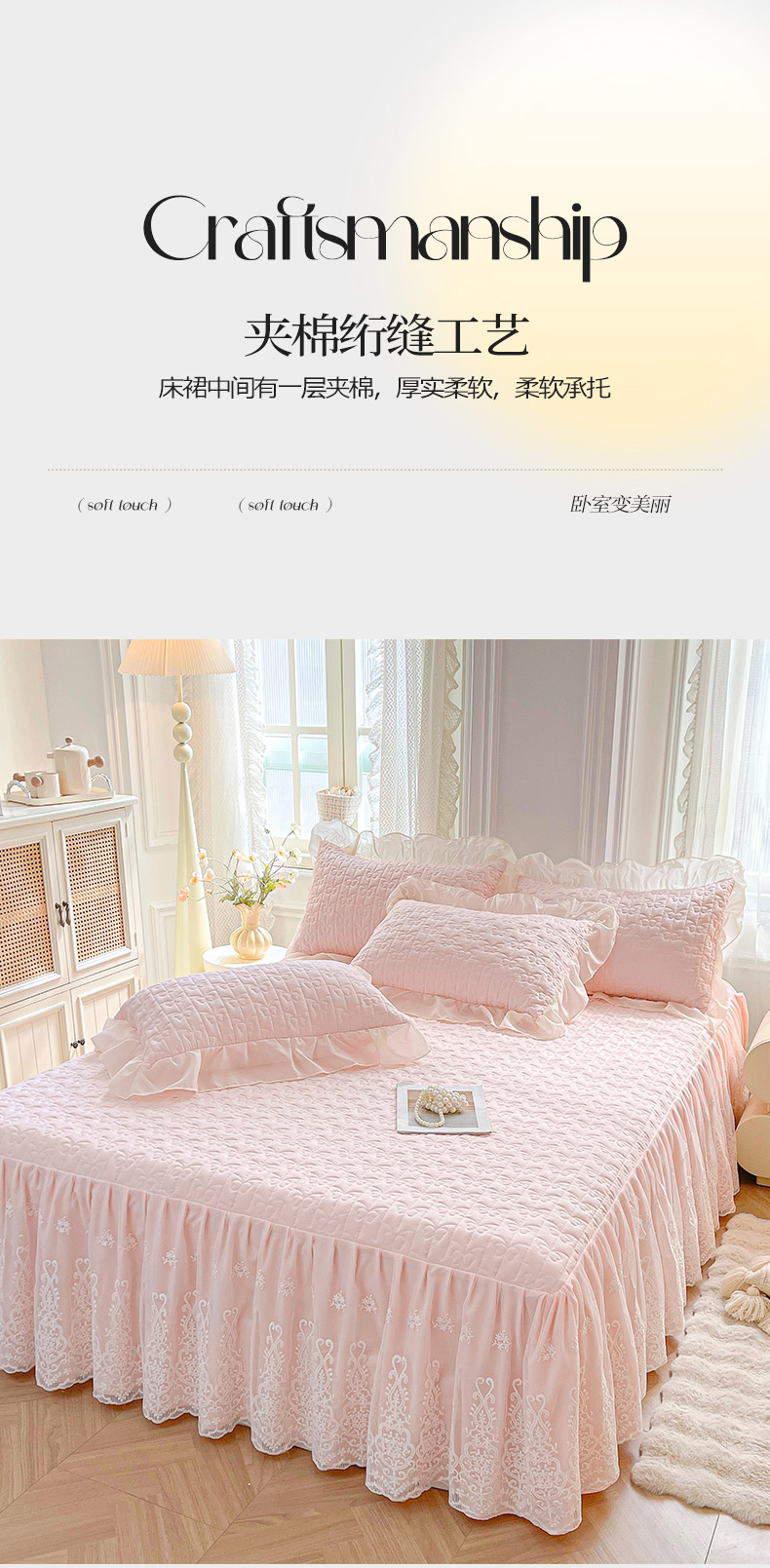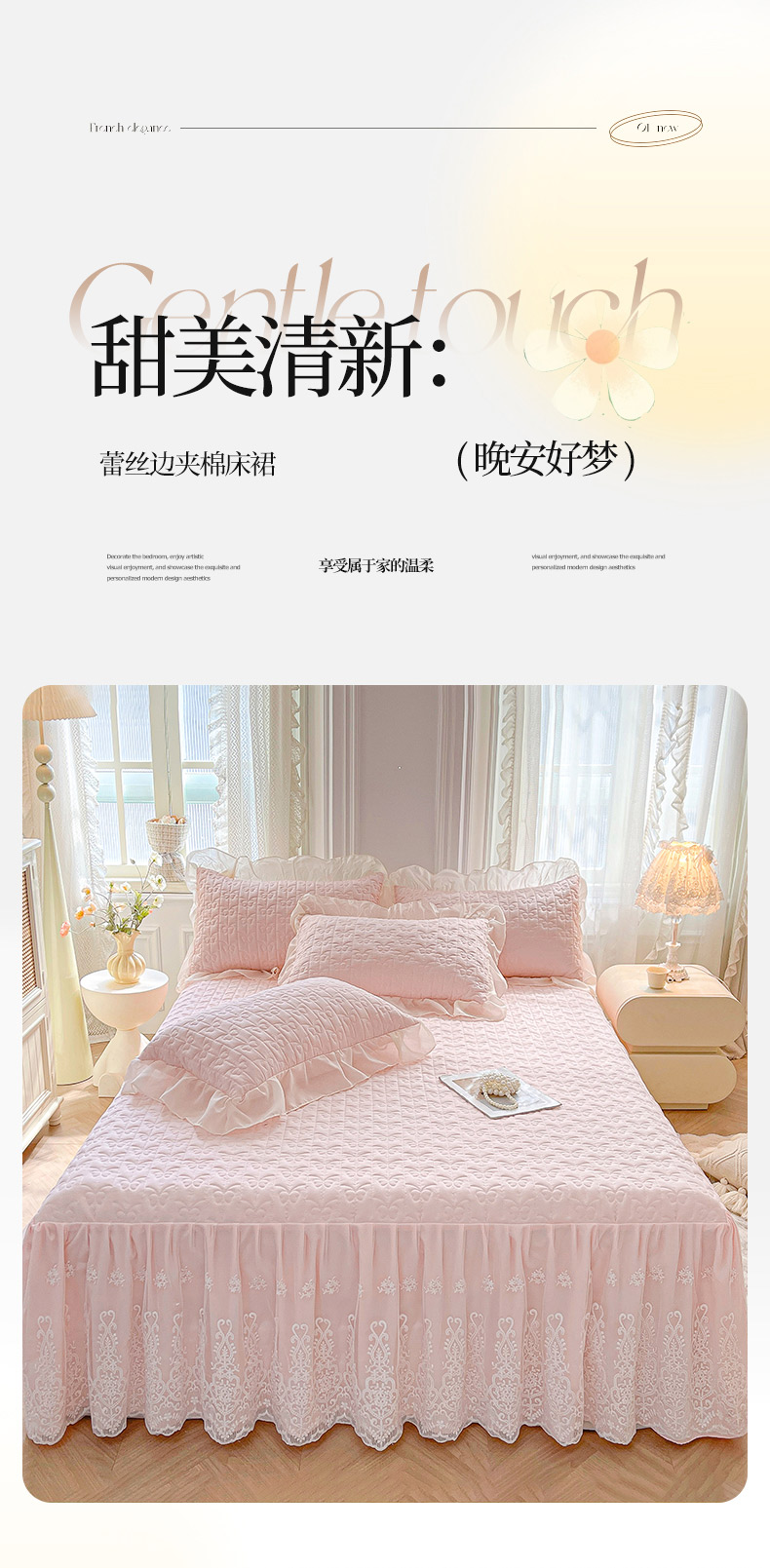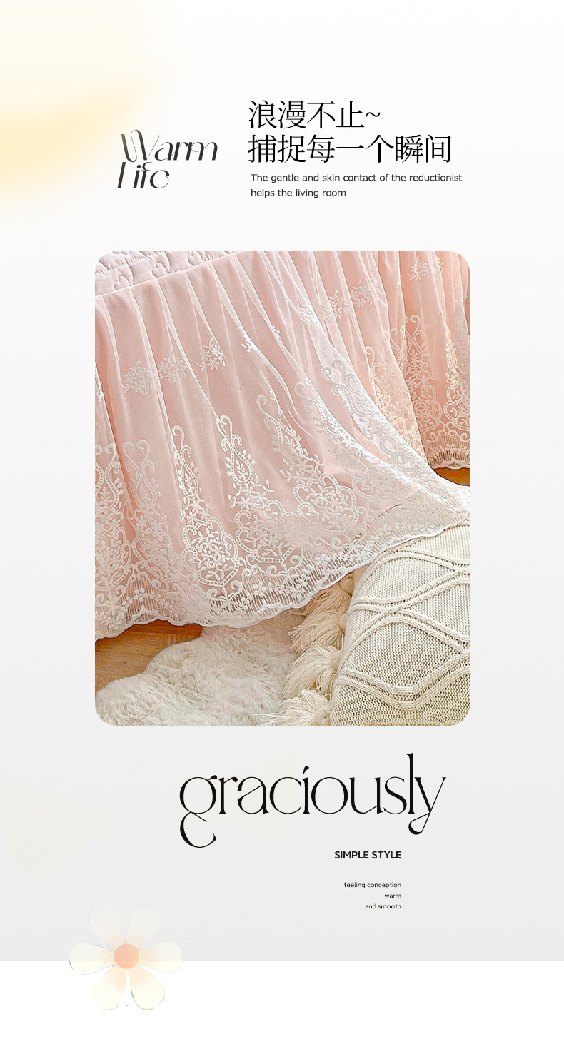 商品名称:鼎丰家纺 2025新款蕾丝夹棉床裙-洛可可系列 洛可可-粉