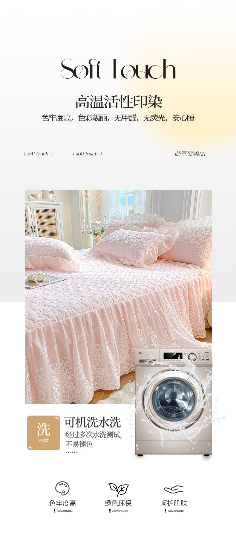 (总)鼎丰家纺 2025新款皱皱纱床裙-蜜恋系列,奶油黄,嫩绿,樱花粉,浅玉,浅豆沙,浅蓝