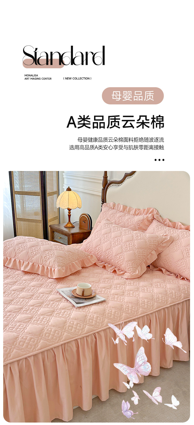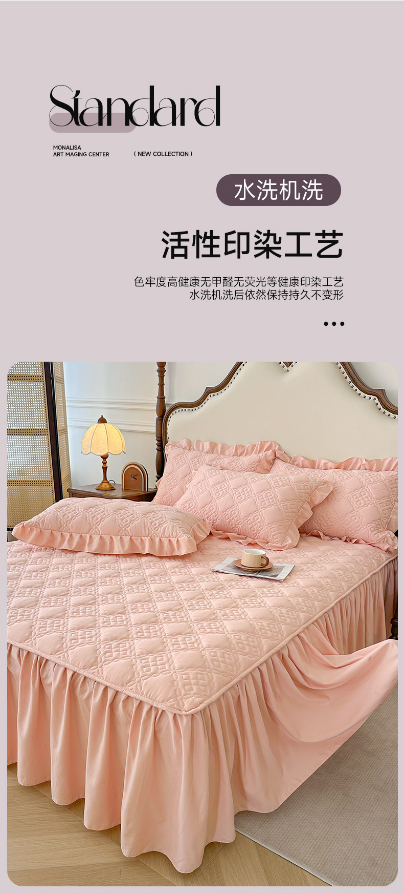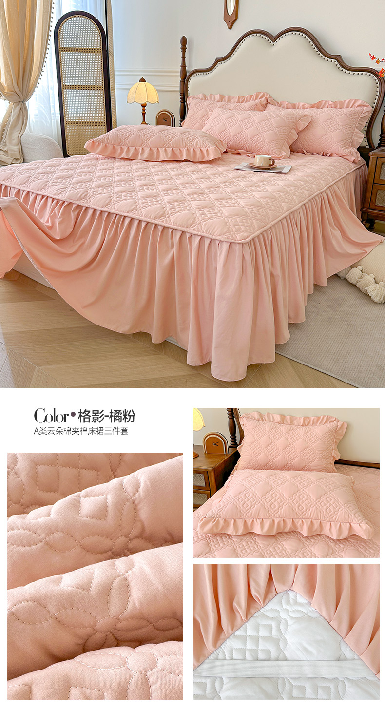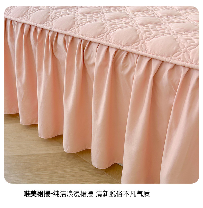 商品名称:鼎丰家纺 2025新款纯色夹棉床裙-格影 格影-橘粉