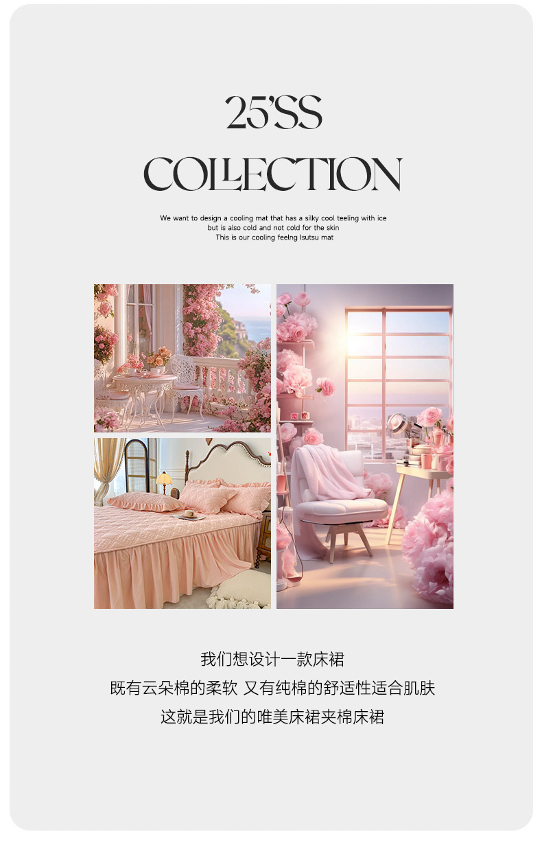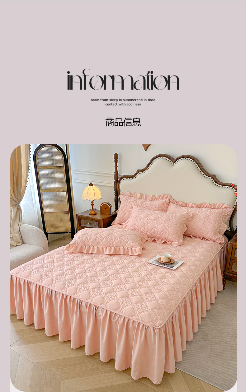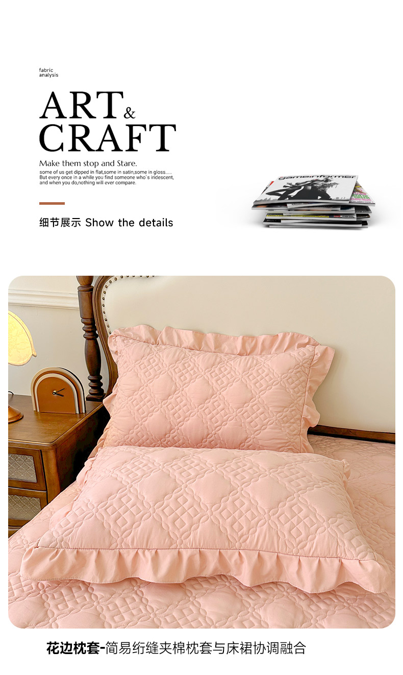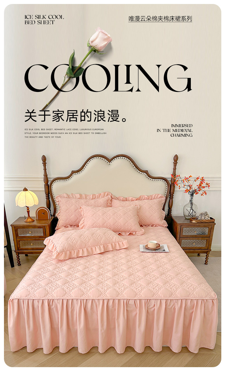 商品名称:鼎丰家纺 2025新款纯色夹棉床裙-格影 格影-橘粉