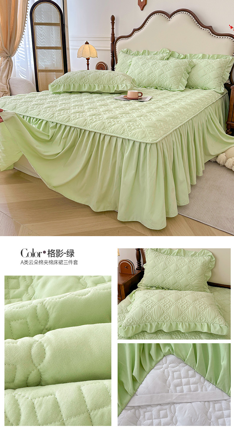 (总)鼎丰家纺 2025新款皱皱纱夹棉床裙三件套--晨曦系列,晨曦-奶油黄,晨曦-豆沙,晨曦-嫩绿,晨曦-清新蓝,晨曦-樱花粉,晨曦-玉色