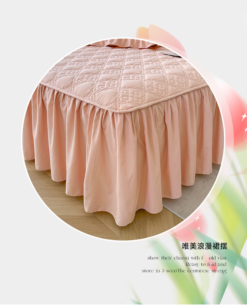 鼎丰家纺 2025新款纯色夹棉床裙-格影 格影-橘粉