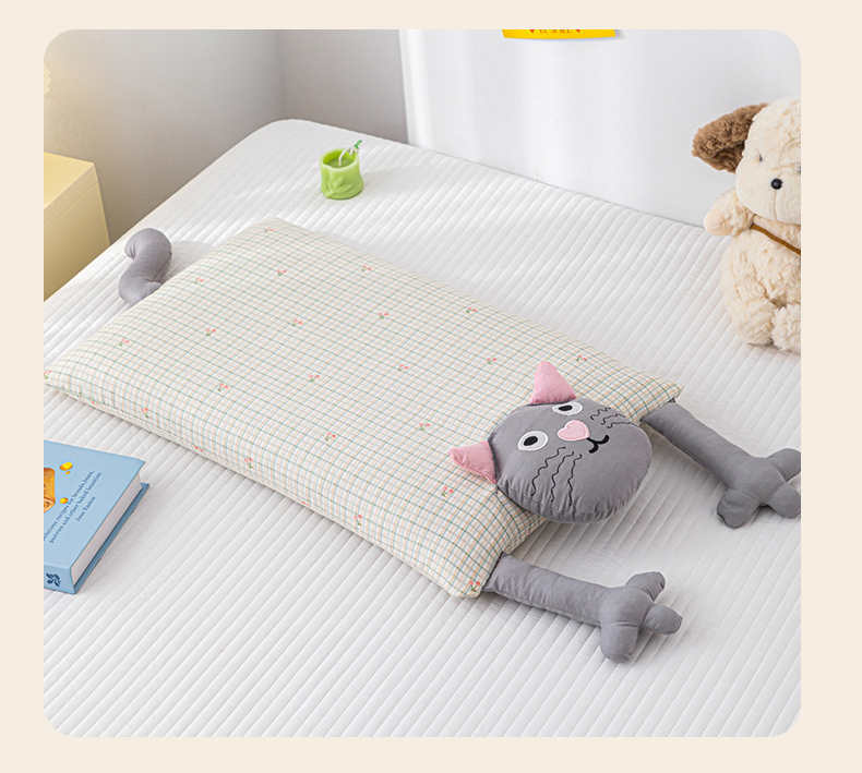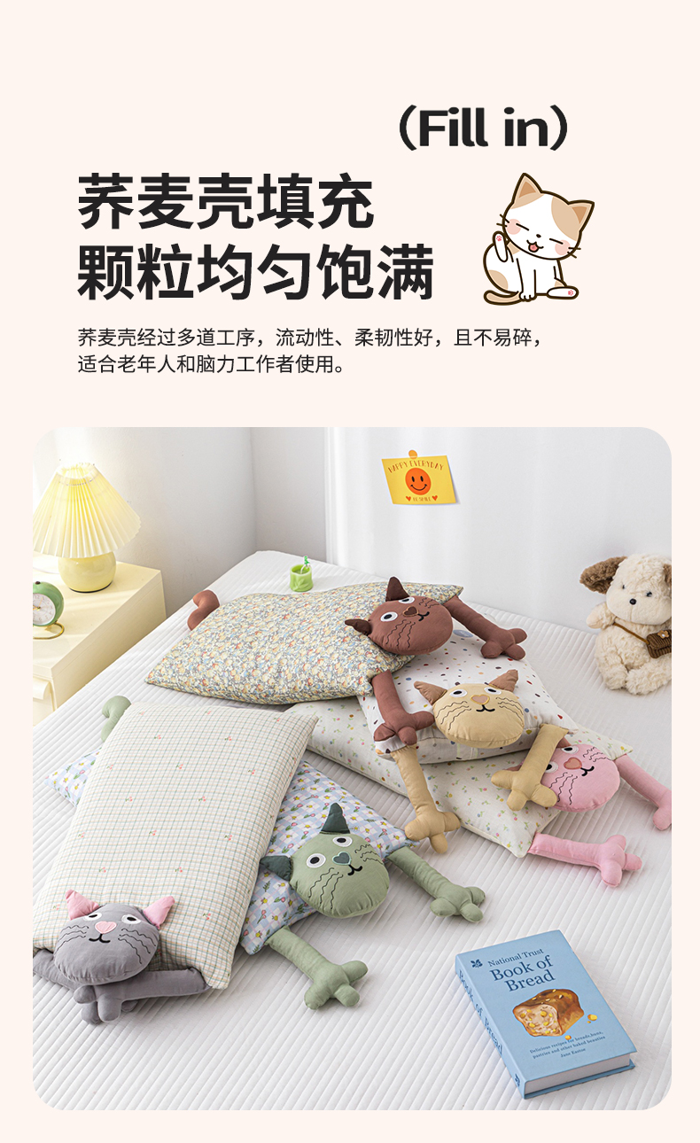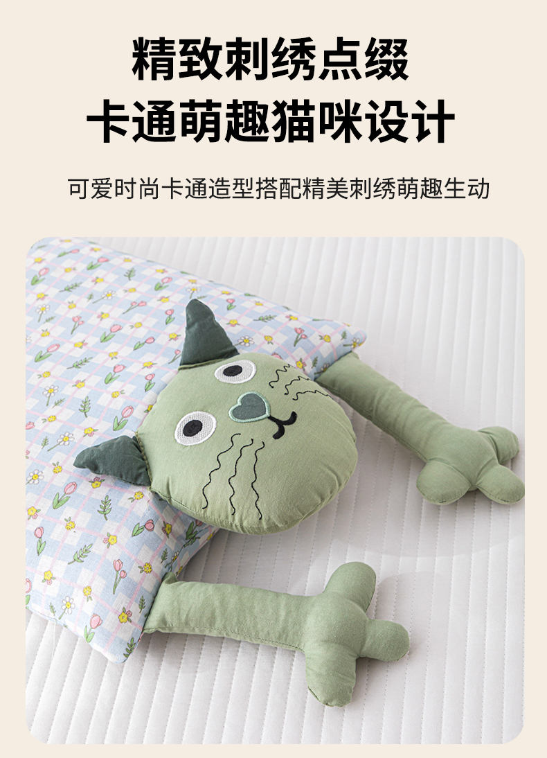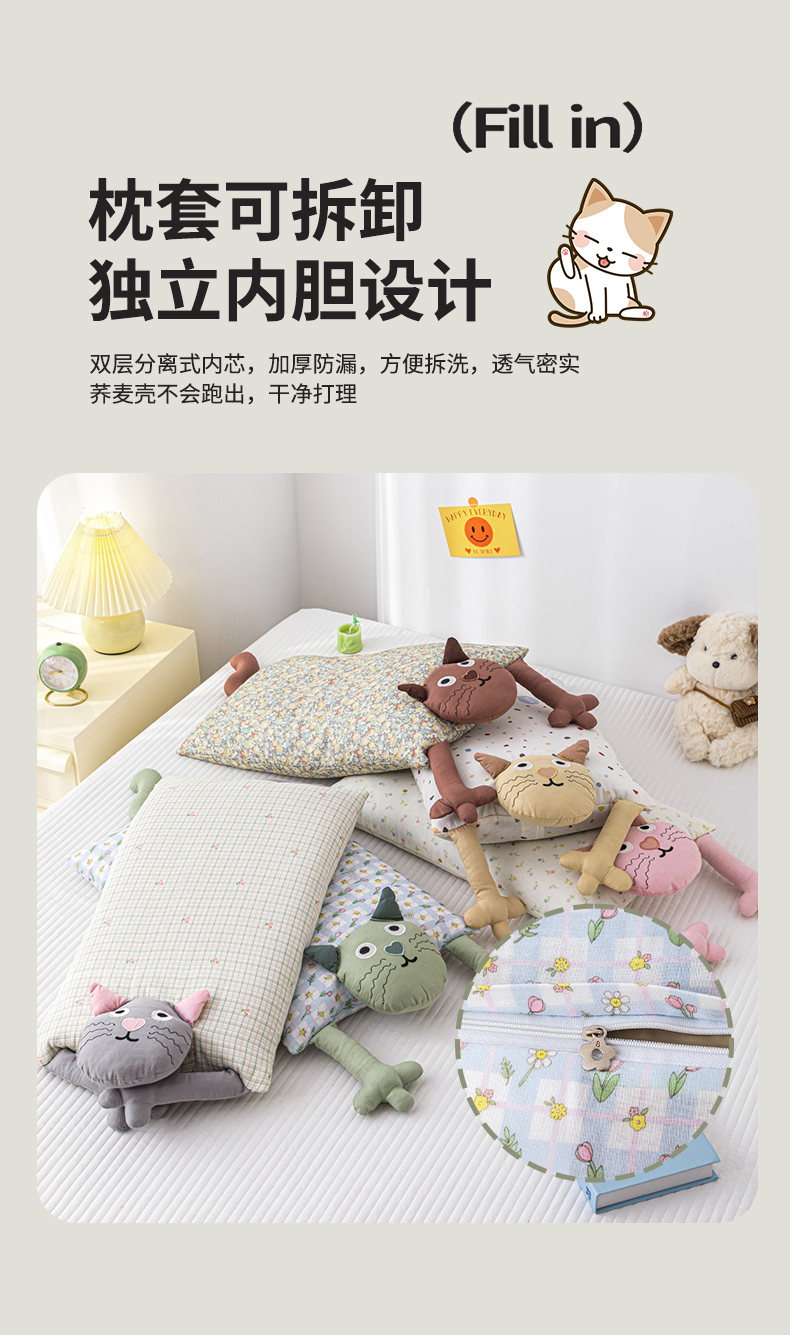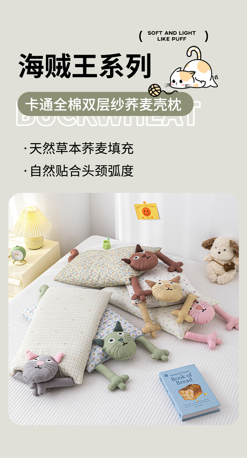 商品名称:(总)仁宇枕业 2025新款全棉纯棉双层纱甜荞麦枕芯卡通儿童学生成人护颈枕枕头枕芯-哇噻猫