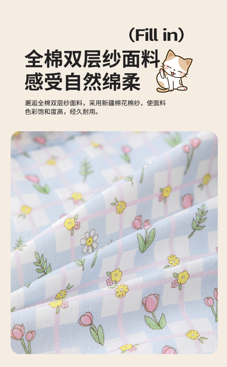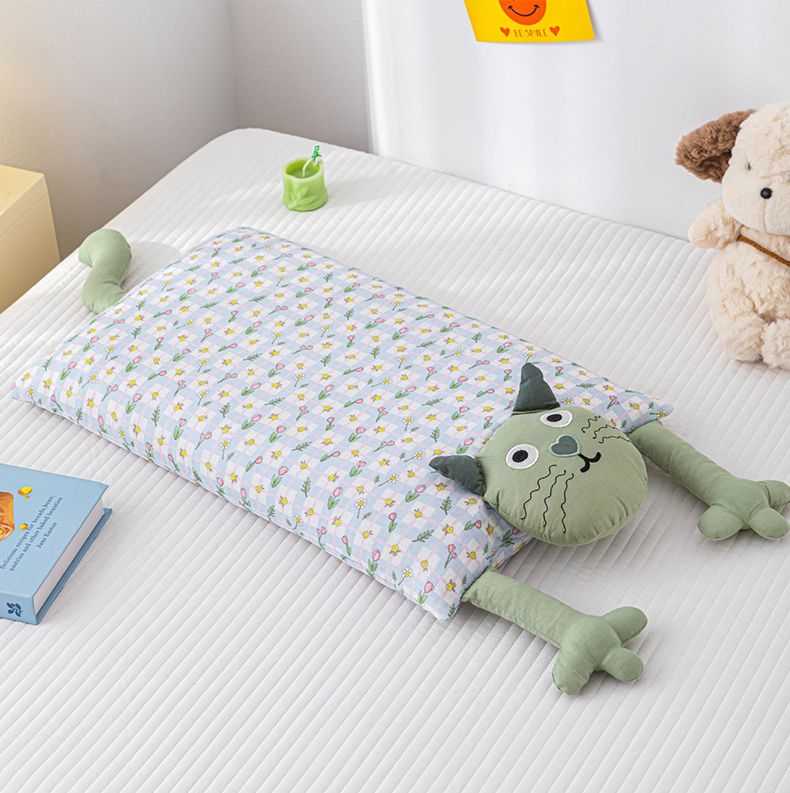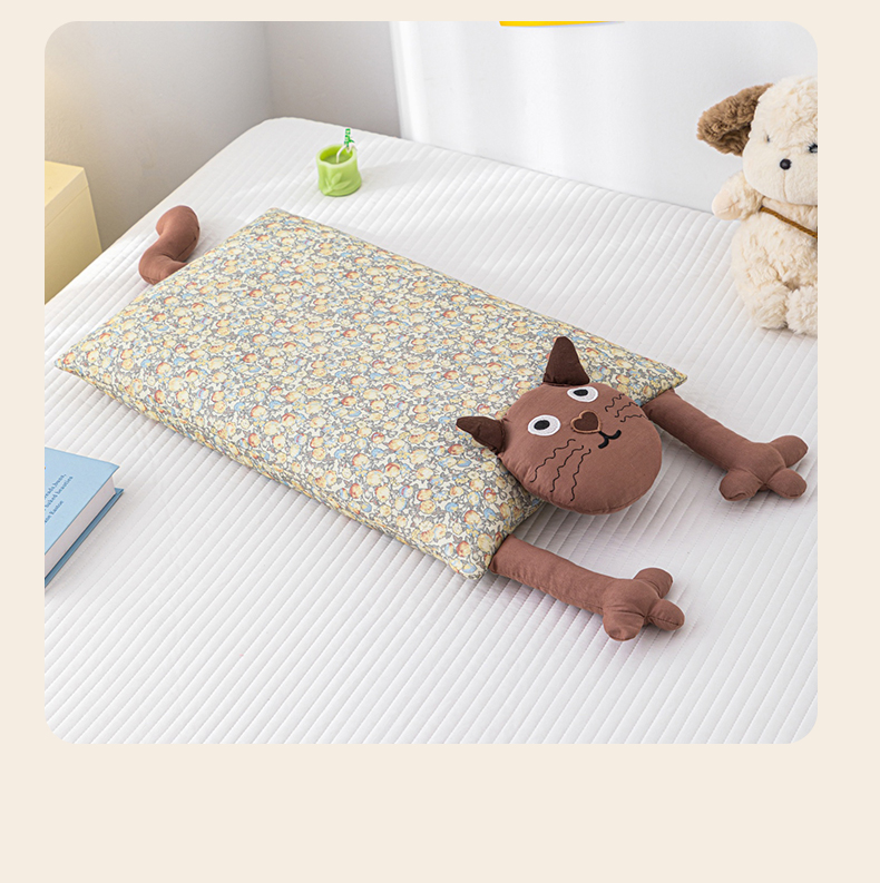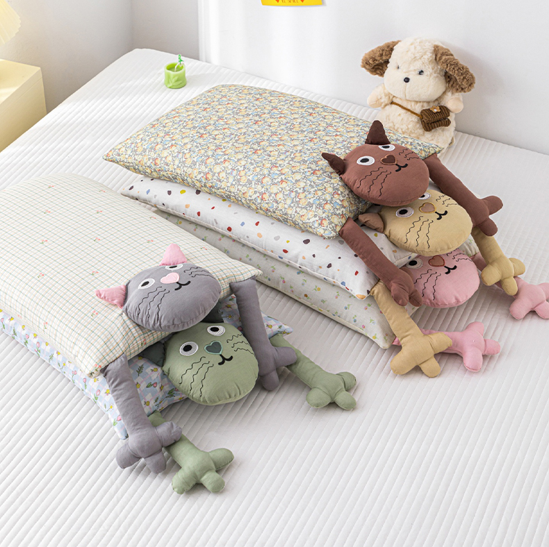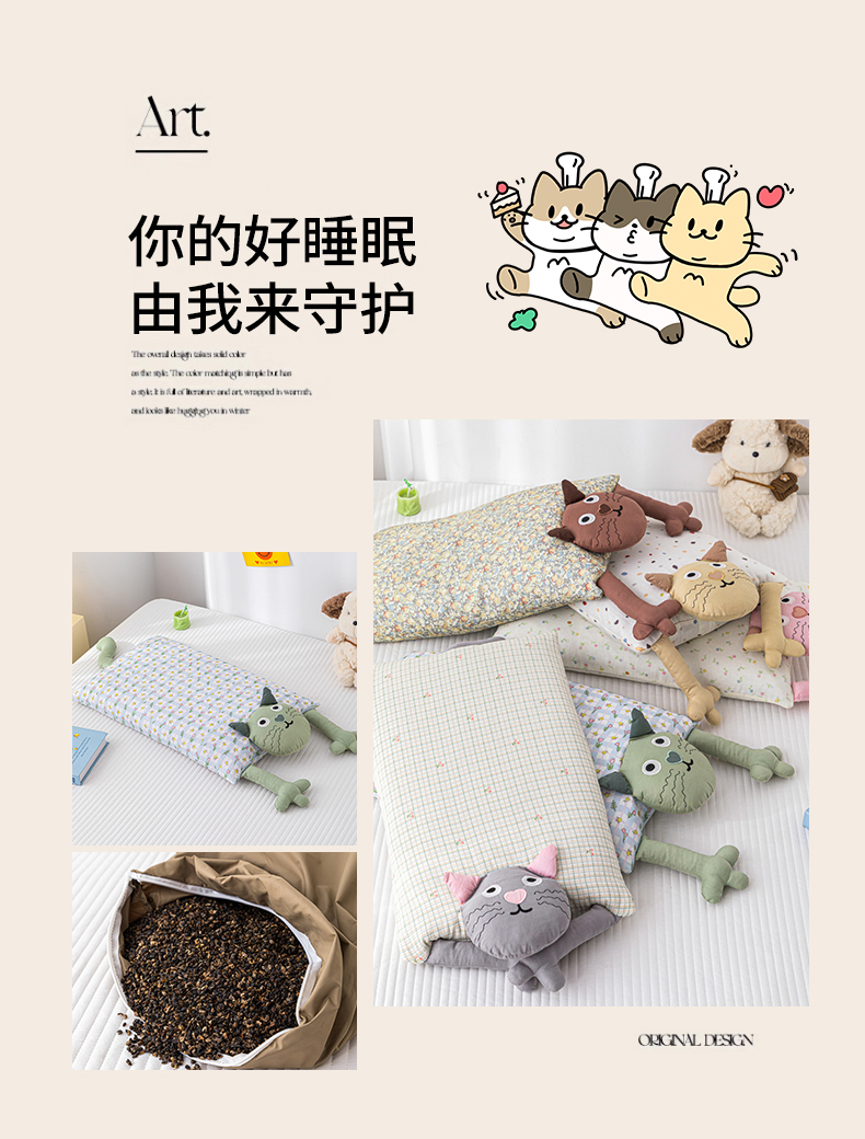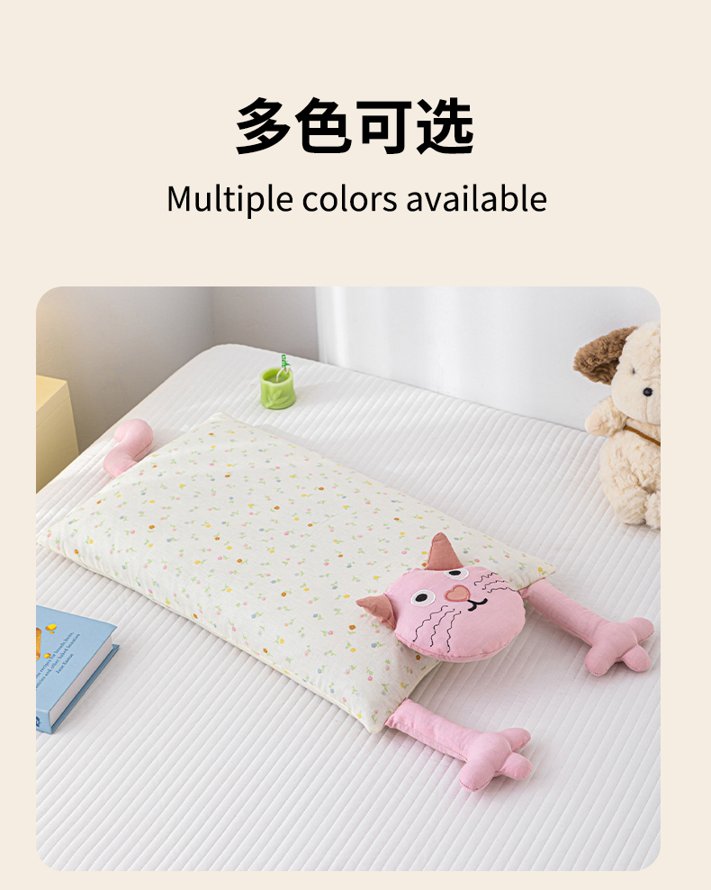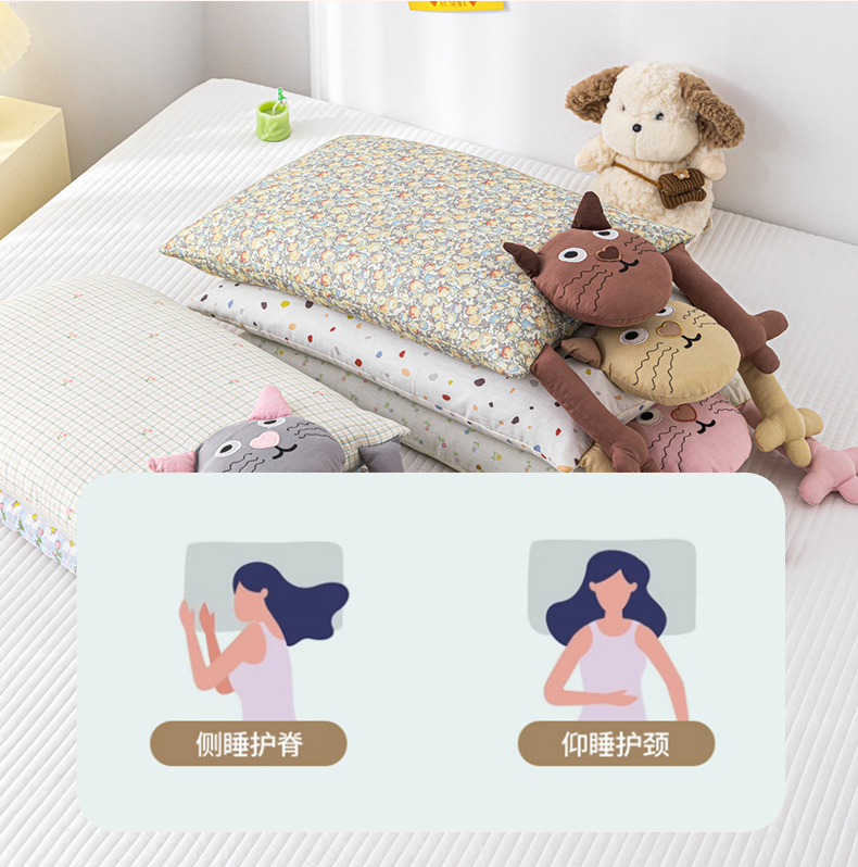 商品名称:(总)仁宇枕业 2025新款全棉纯棉双层纱甜荞麦枕芯卡通儿童学生成人护颈枕枕头枕芯-哇噻猫