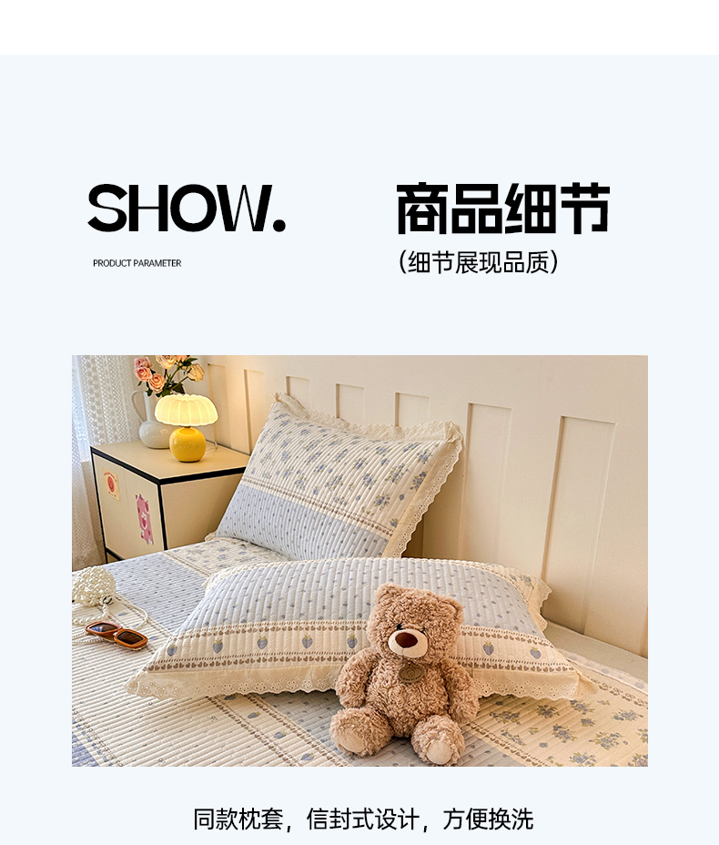 (总)岚吉家纺 2025新款全棉绗缝棉花床盖花边款三件套四件套,缤纷樱桃,草莓格子,花边兔,黄苏条,蓝美人,落落晨光,萌萌狮,蘑菇狗,秋日玫瑰,兔菲菲,向晚,小黑点点(米),游花间