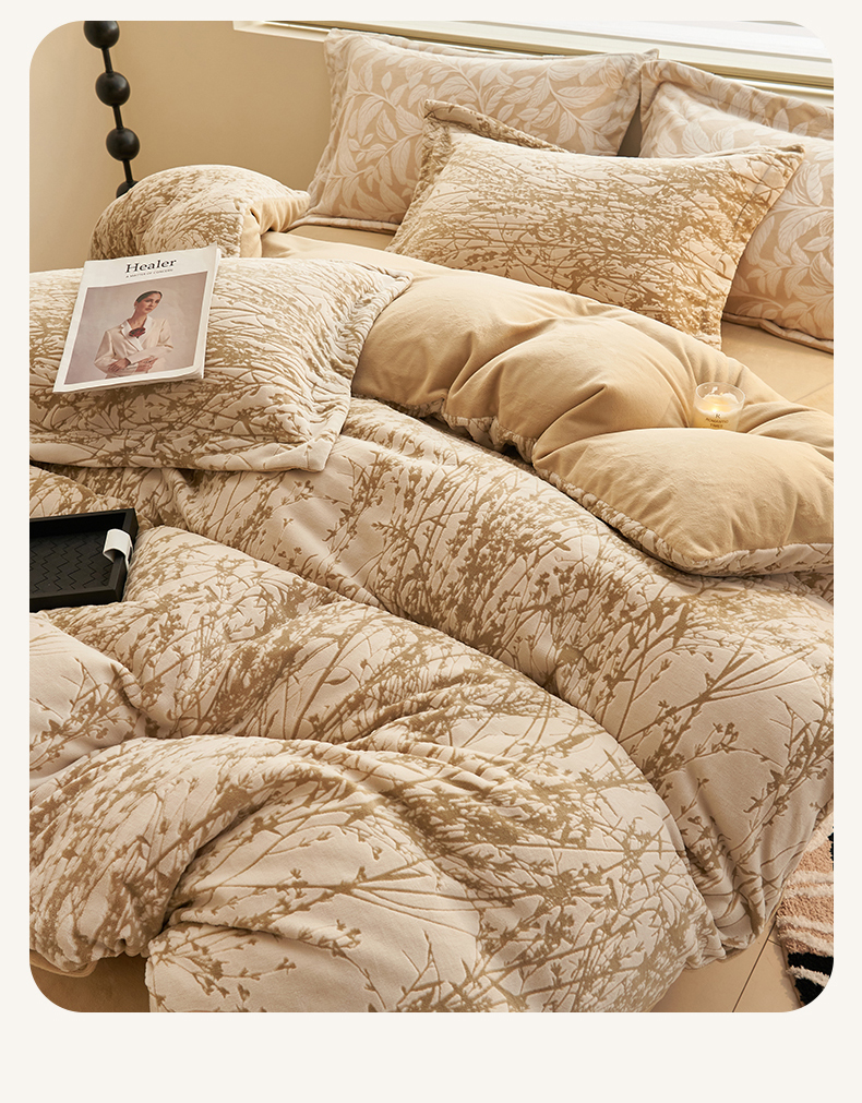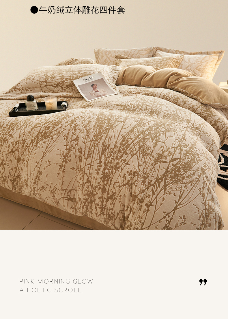 恒爱家纺 2025新款牛奶绒立体剪花四件套 写意风情-咖啡