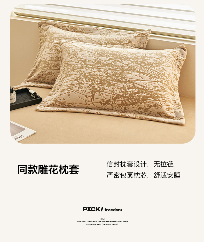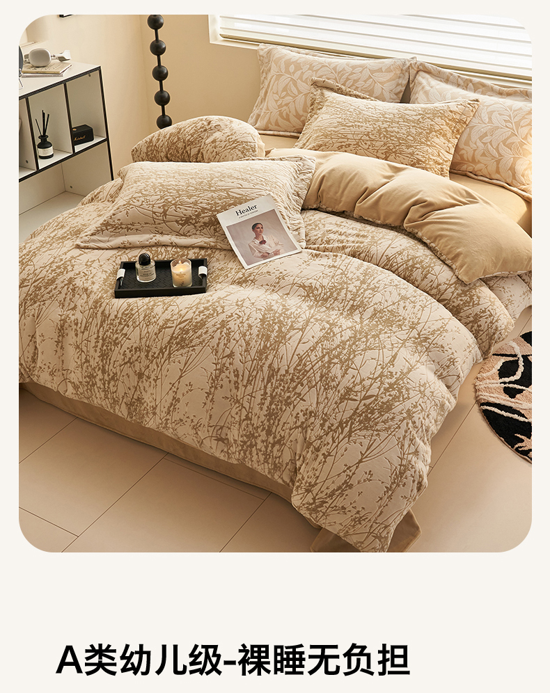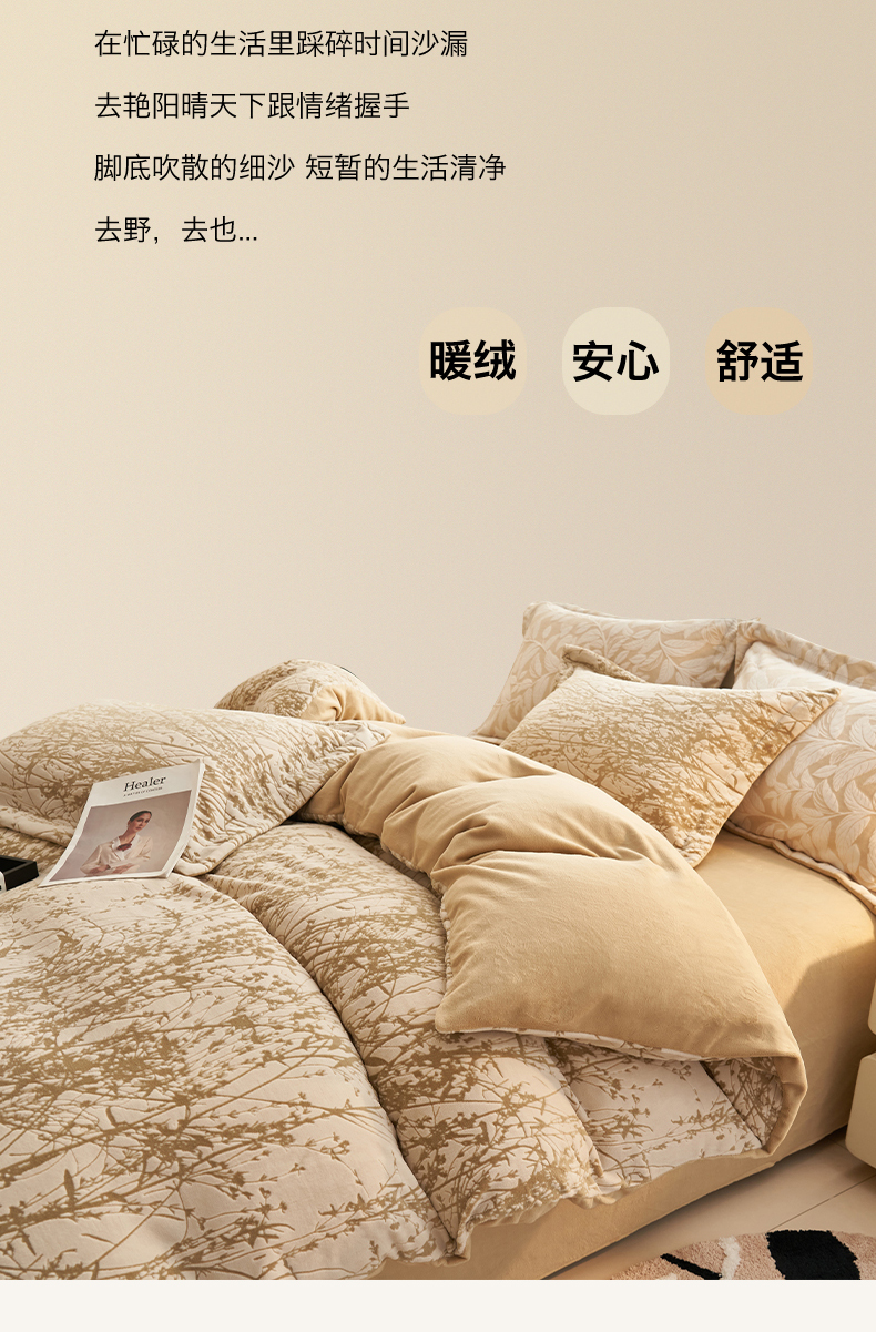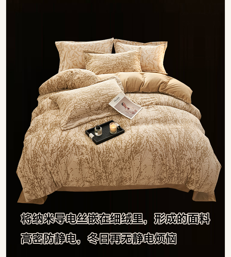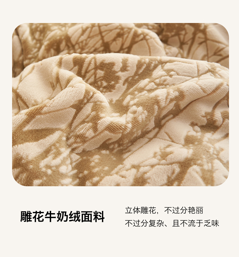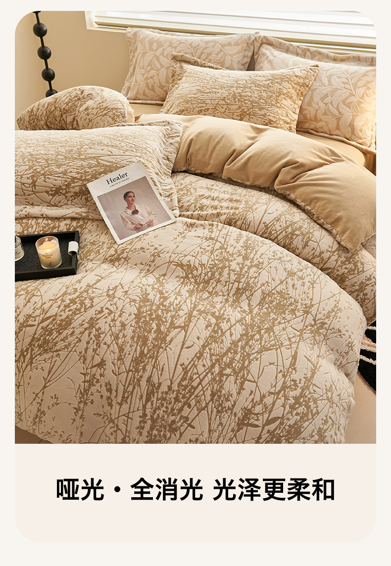 商品名称:恒爱家纺 2025新款牛奶绒立体剪花四件套 写意风情-咖啡