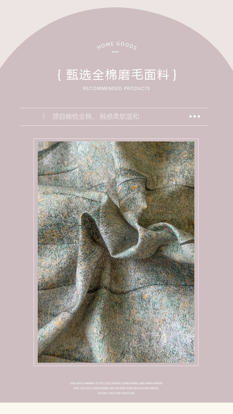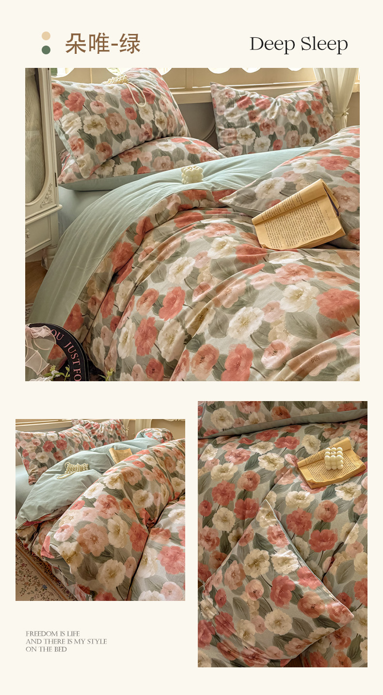 商品名称:田野 2025新款全棉13360加厚磨毛印花四件套 灼华-绿