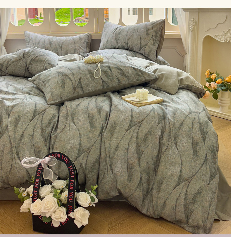 (总)田野 2025新款全棉水洗棉提花锦绣系列四件套,锦绣-灰,锦绣-卡其,锦绣-绿