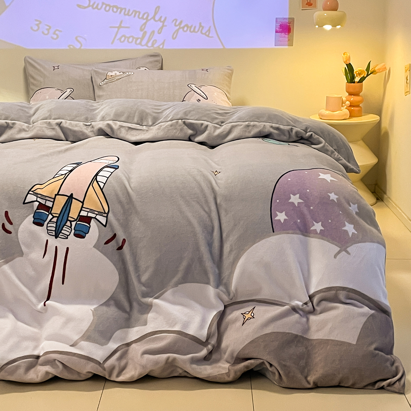 当前位置: 91家纺网 > 商品网购 > 床品套件 > 四件套 > 牛奶绒四件套 > (总)控价 2025年新款 专版花型 240克全消光A类儿童牛奶绒四件套-飞行游