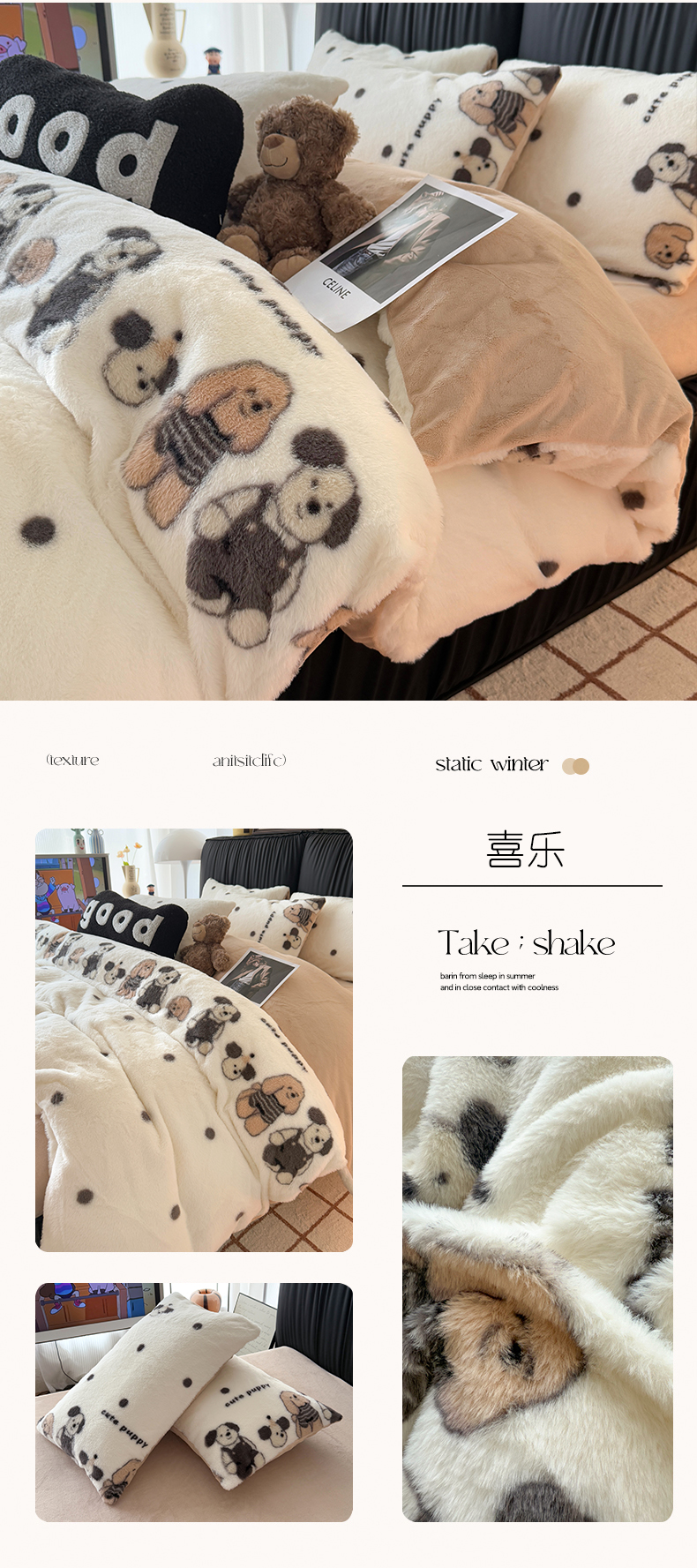 (总)HL原创 2025新款兔毛绒四件套,繁花,粉色心情,狗狗线条,焦糖爱心,咖啡,洛可可,麦田,魔法学院,魔方,陌颜,墨蓝,绅士,时尚斑马,晚霞,五彩缤纷,喜乐,小萌物,英伦风,悦动,自由-黑