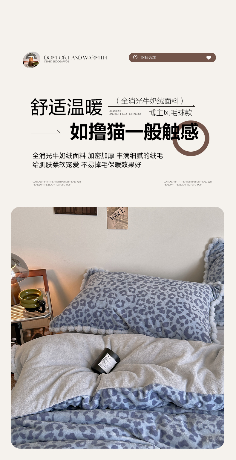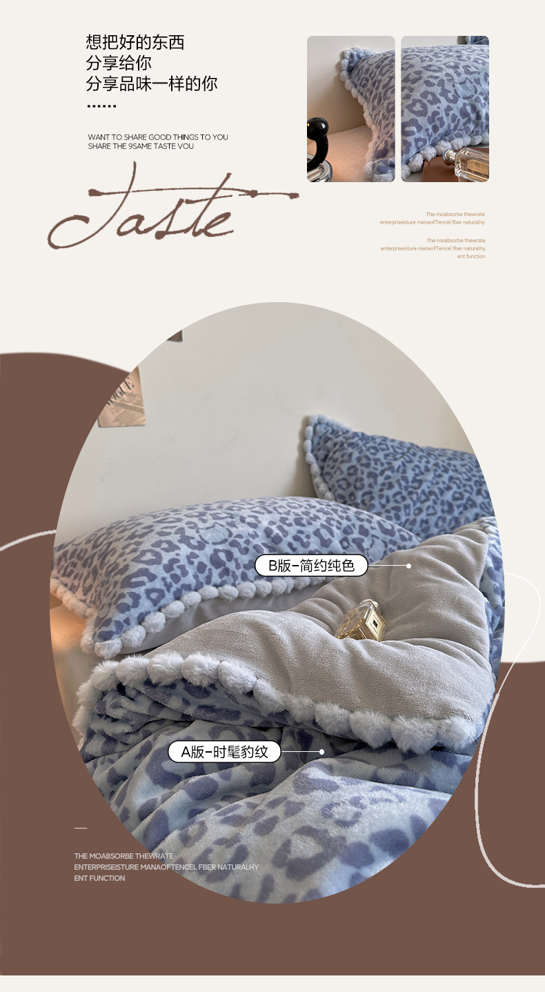 当前位置: 91家纺网 > 商品网购 > 床品套件 > 四件套 > 牛奶绒四件套 > (总)艾咪-Amy ntmy 2025新款博主风毛球款豹纹牛奶绒四件套