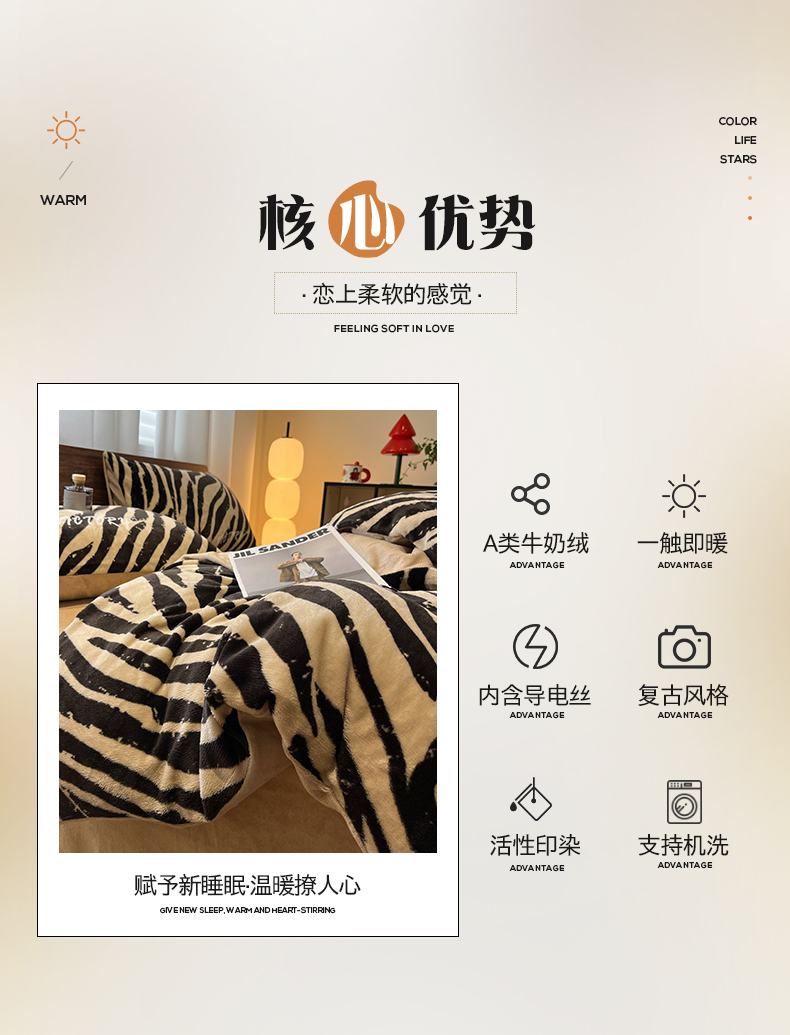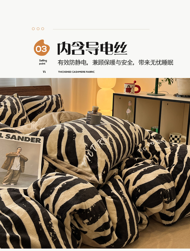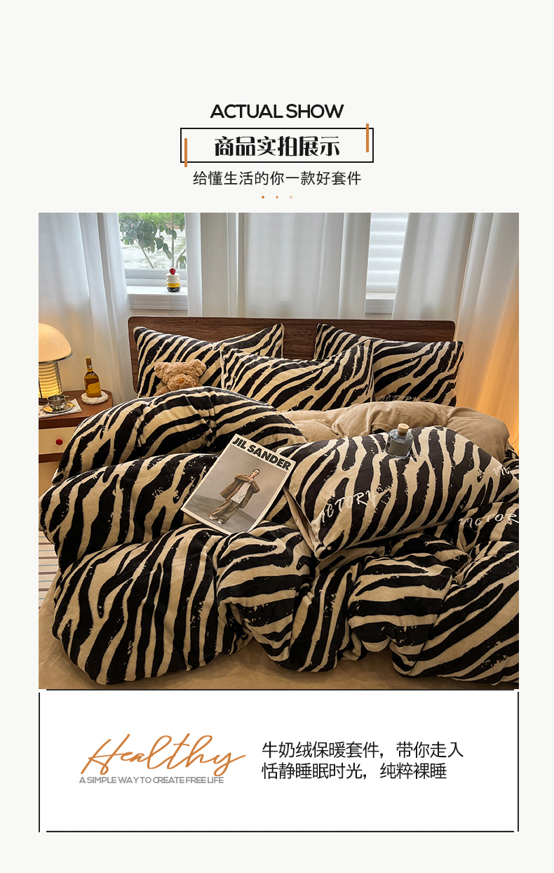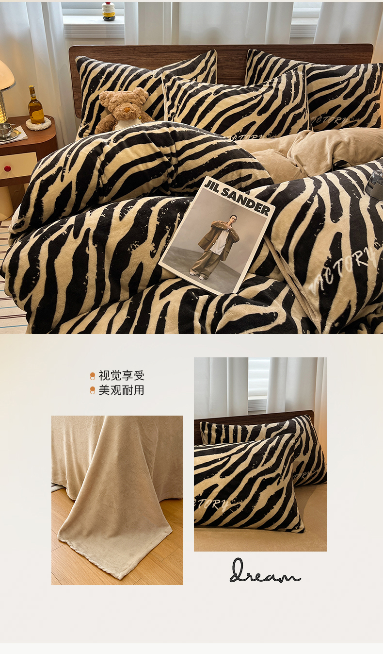 当前位置: 91家纺网 > 商品网购 > 床品套件 > 四件套 > 牛奶绒四件套 > 桃子家居 2025新款A类ins简约奢尚渐变复古格子加厚牛奶绒四件套 绒-斑马纹