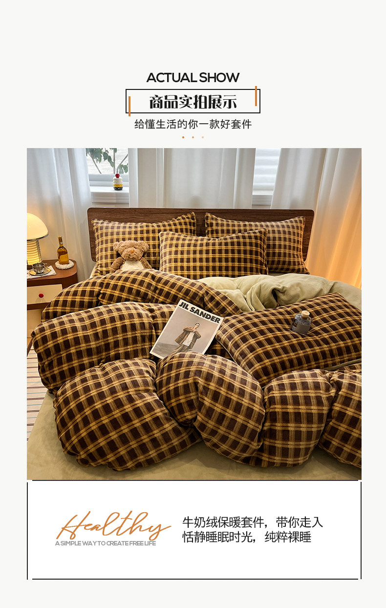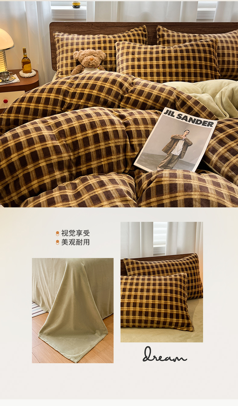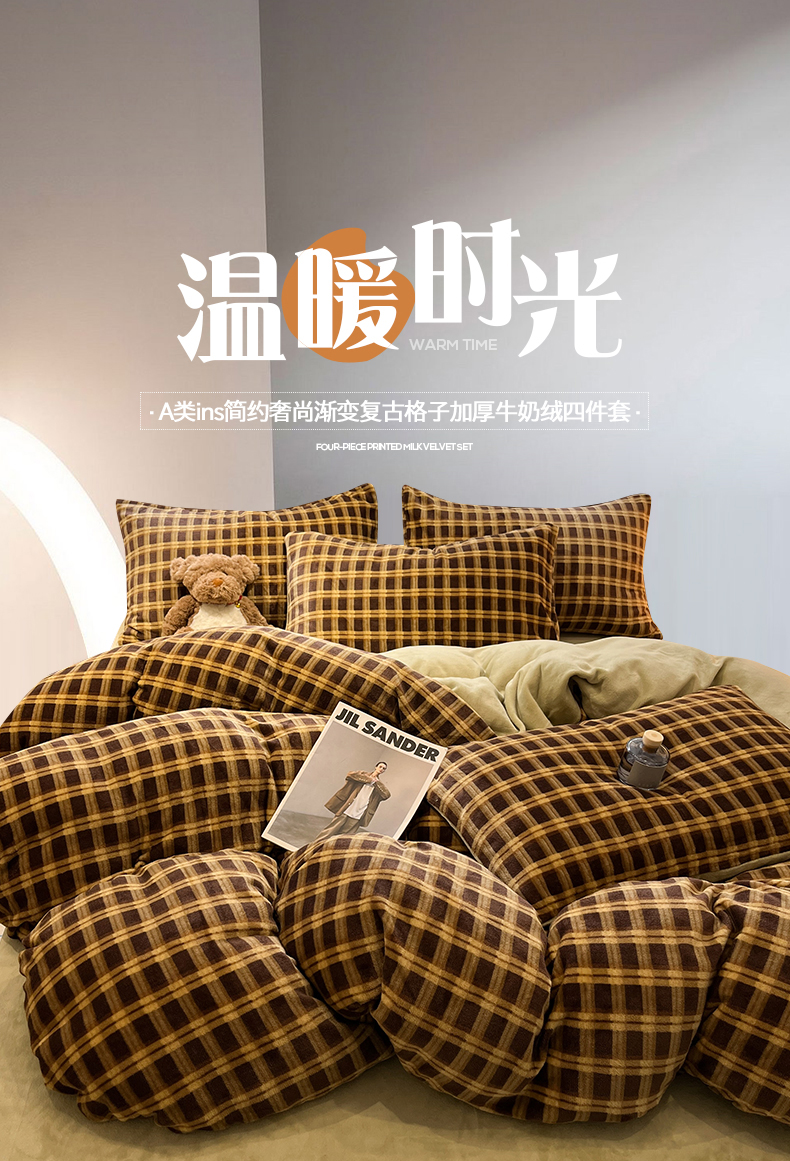 当前位置: 91家纺网 > 商品网购 > 床品套件 > 四件套 > 牛奶绒四件套 > 桃子家居 2025新款A类ins简约奢尚渐变复古格子加厚牛奶绒四件套 绒-棕黄复古绿