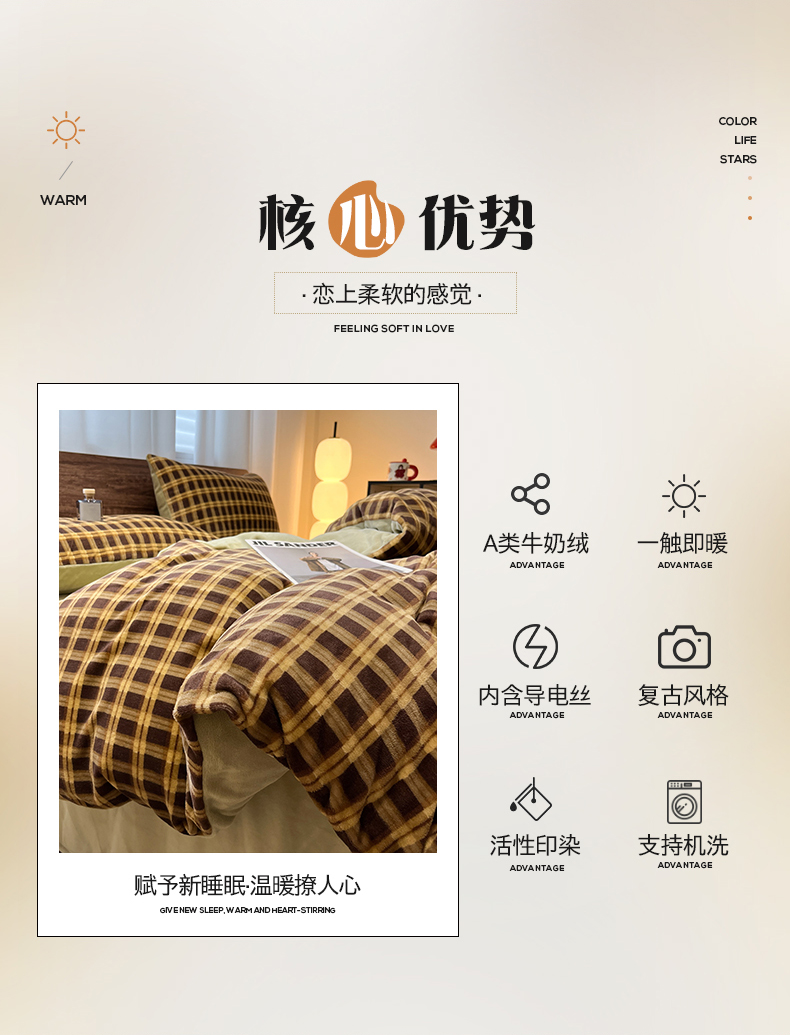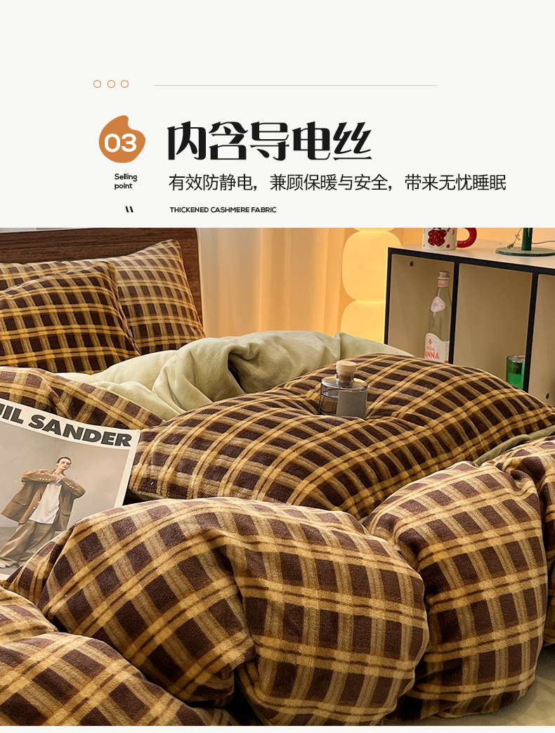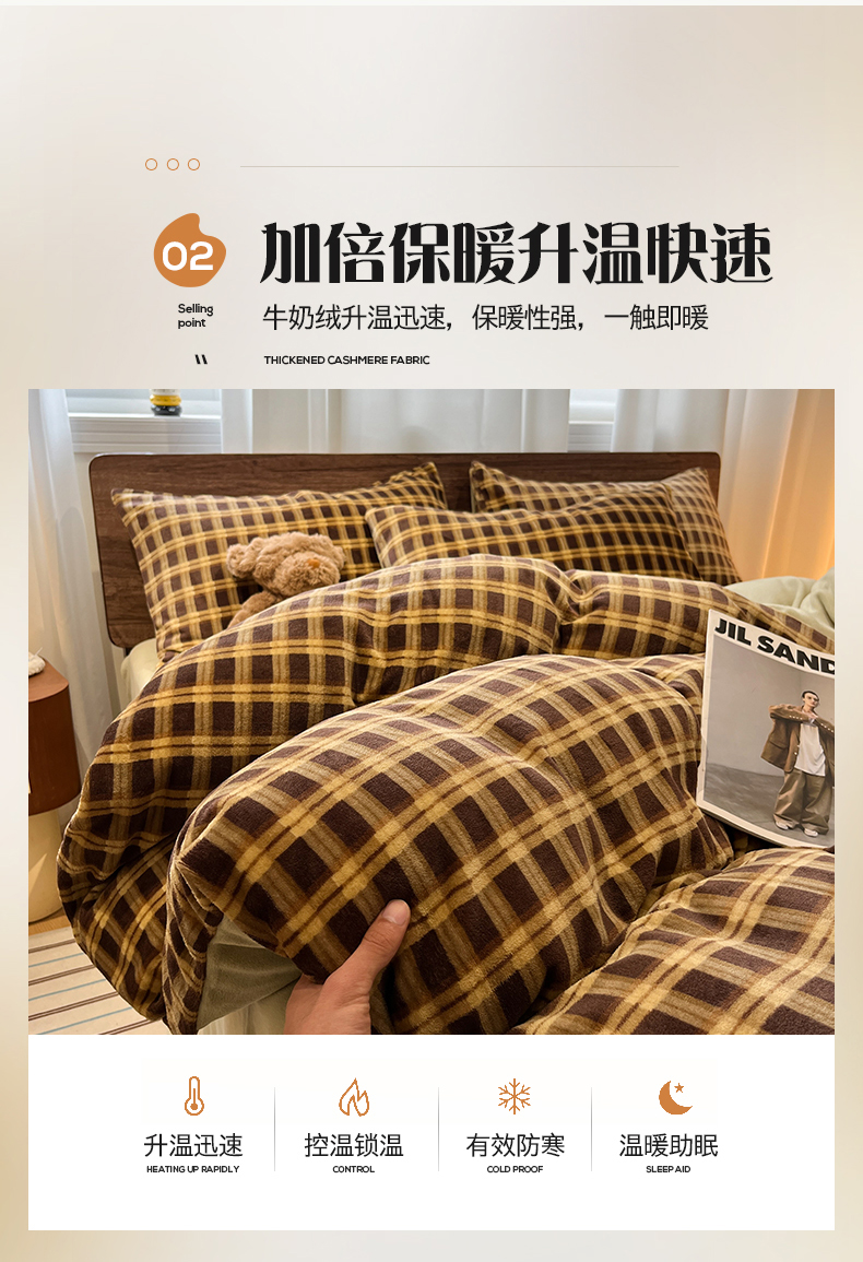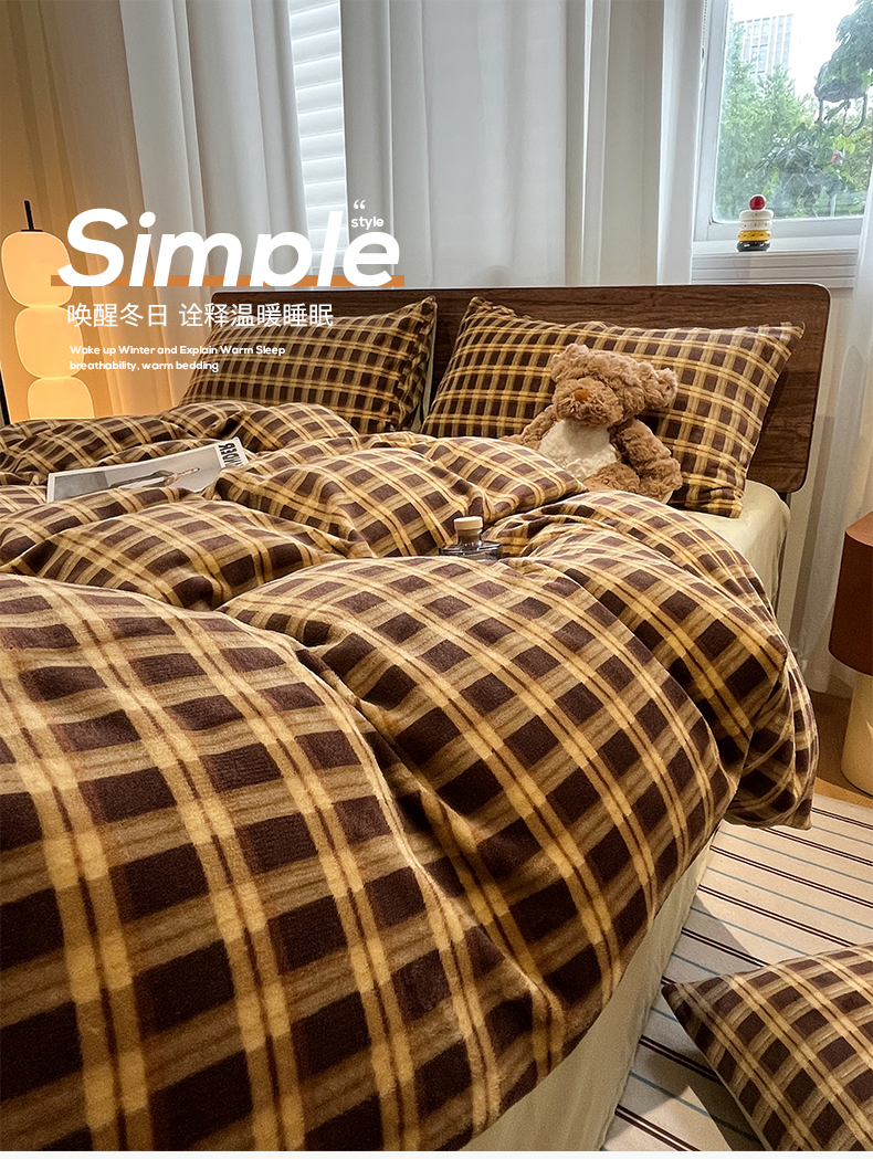当前位置: 91家纺网 > 商品网购 > 床品套件 > 四件套 > 牛奶绒四件套 > 桃子家居 2025新款A类ins简约奢尚渐变复古格子加厚牛奶绒四件套 绒-棕黄复古绿