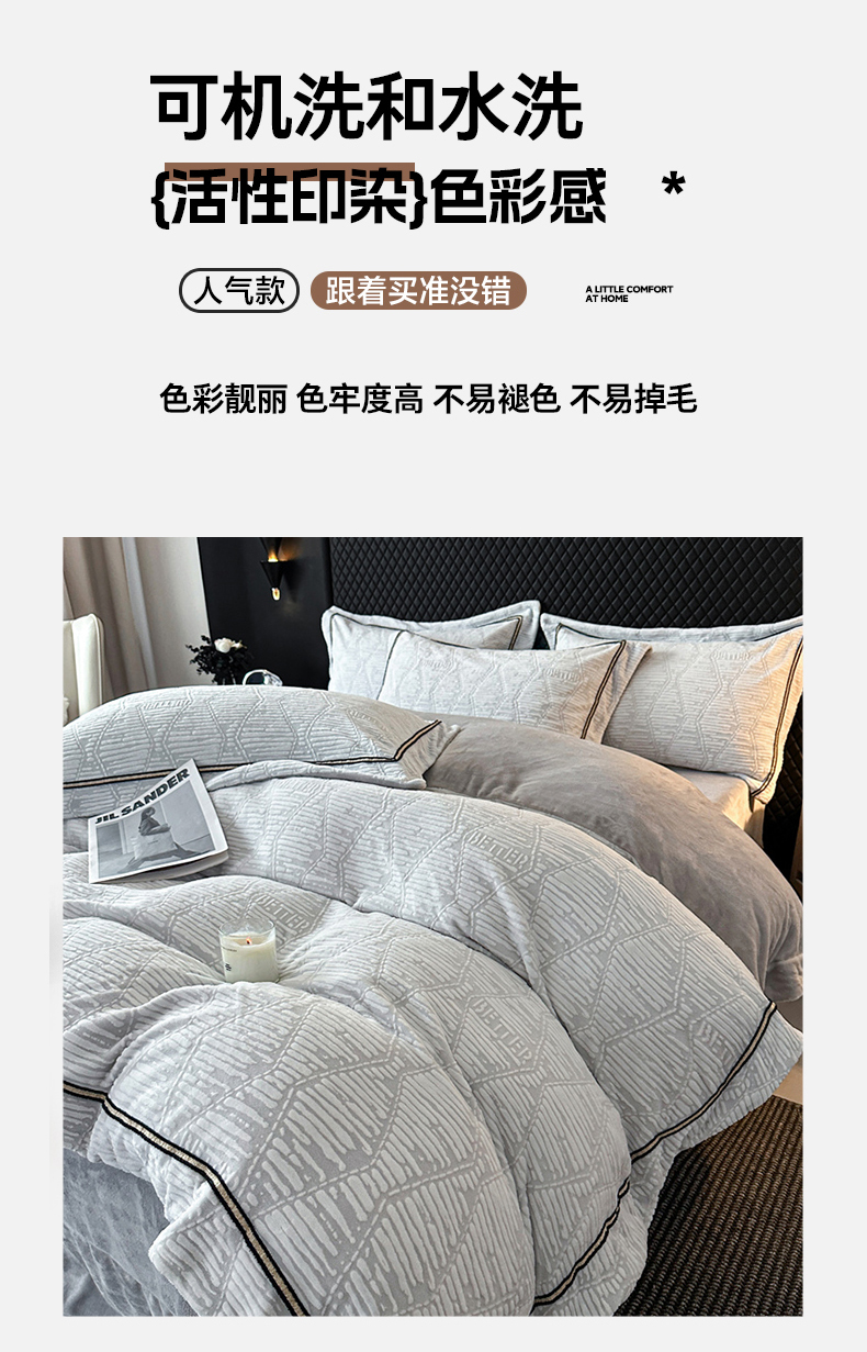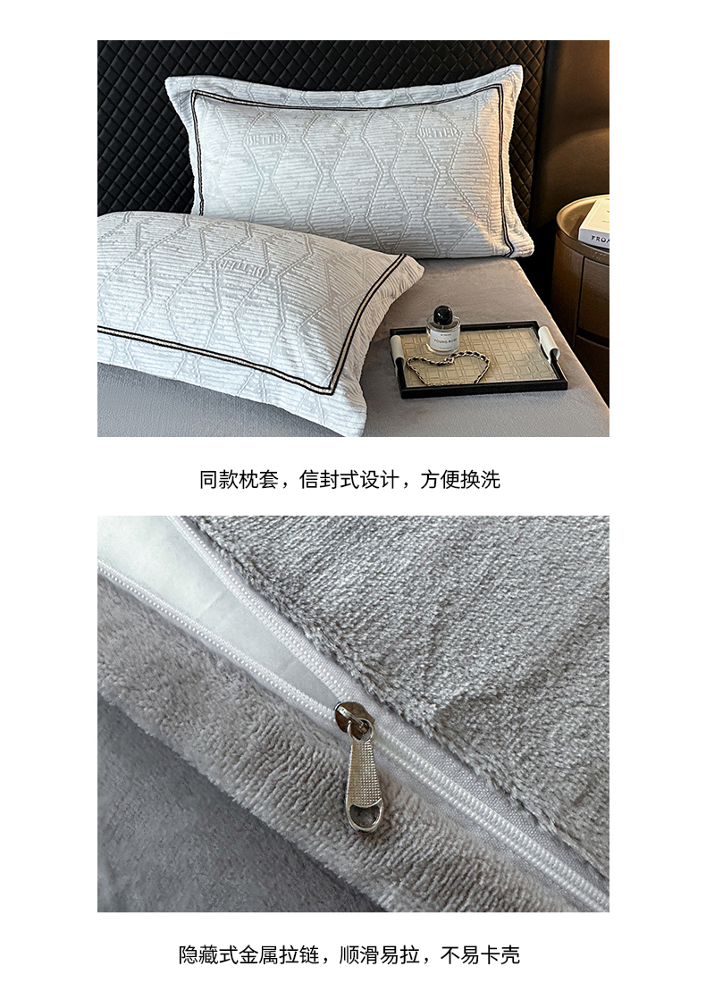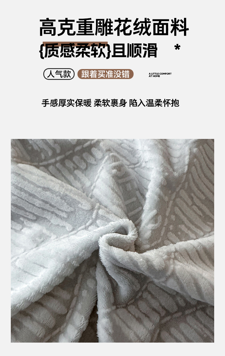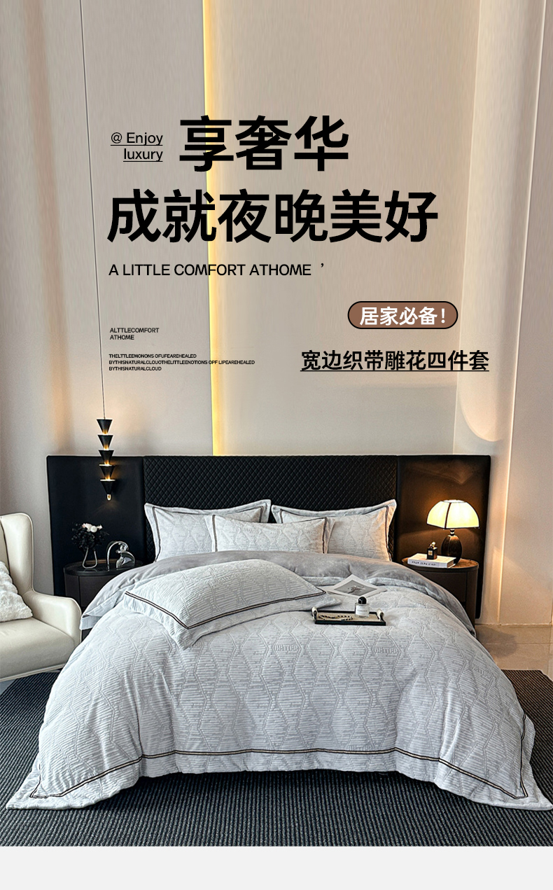 商品名称:诺梵家纺 2025新款8.2斤宽边织带雕花绒牛奶绒四件套 云烟-灰