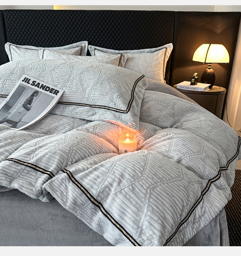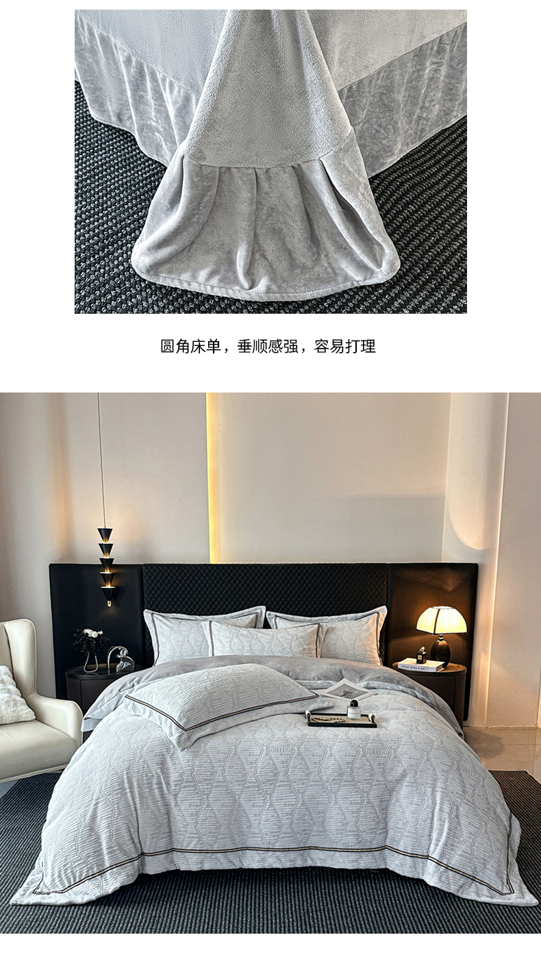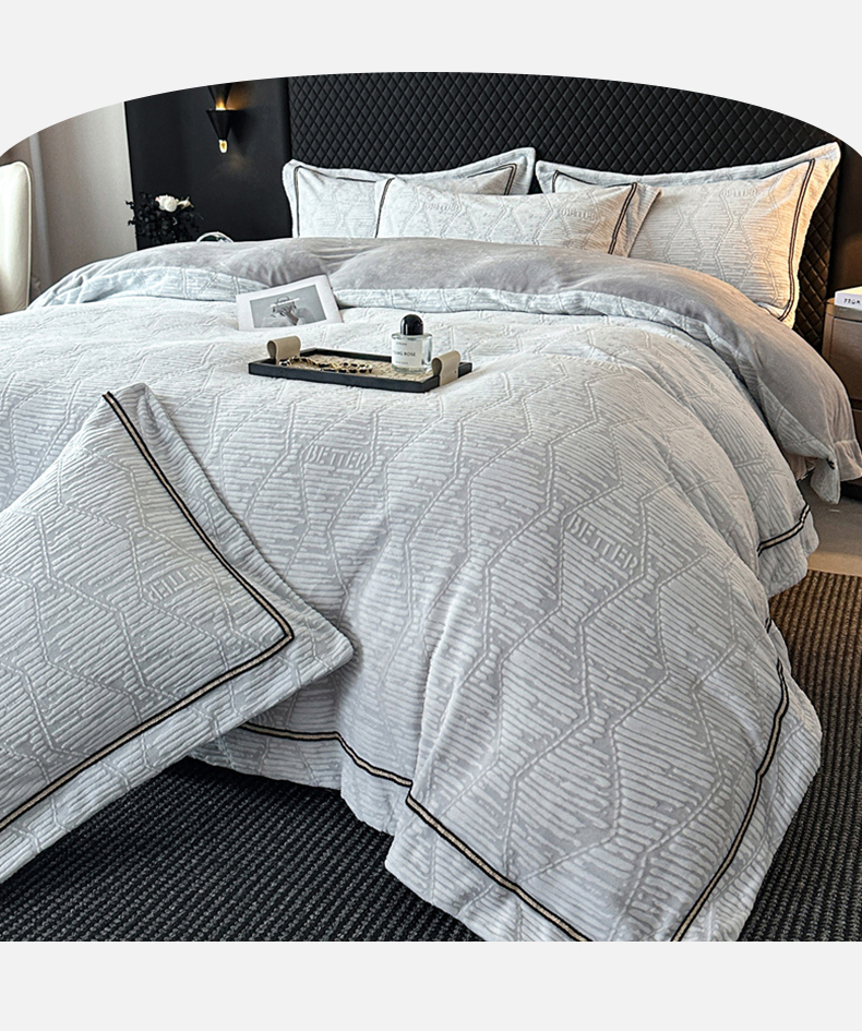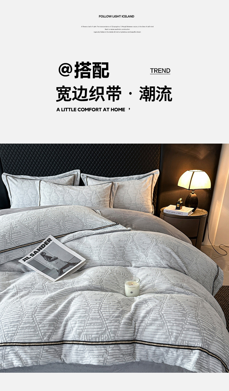 诺梵家纺 2025新款8.2斤宽边织带雕花绒牛奶绒四件套 云烟-灰