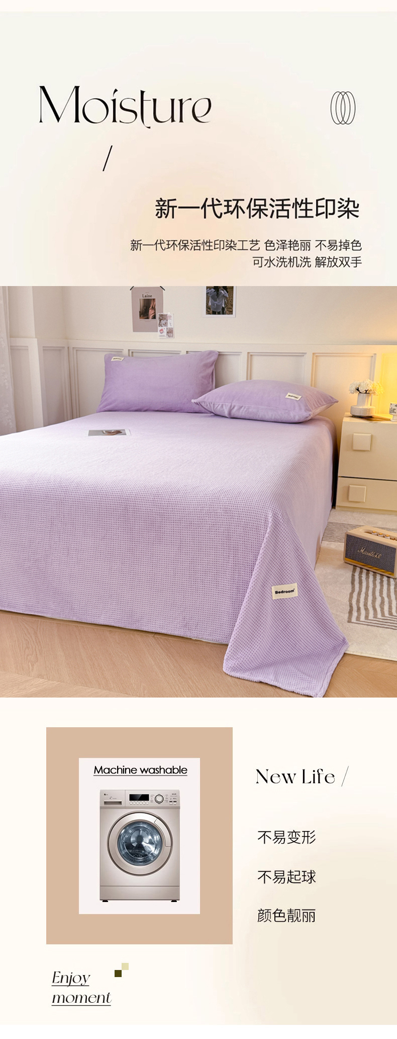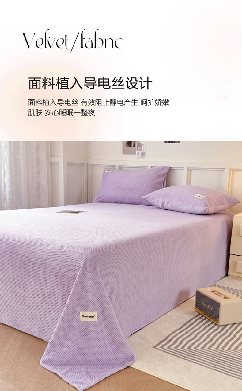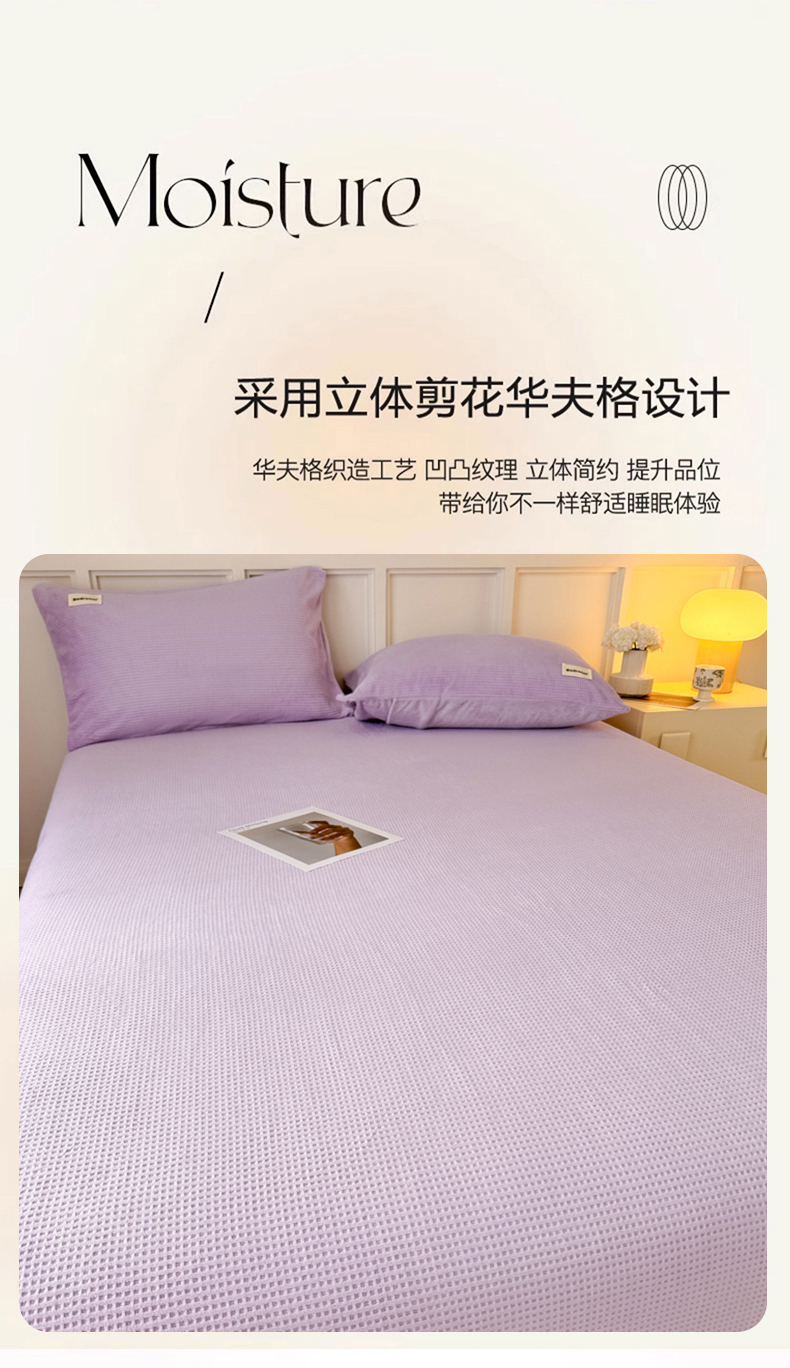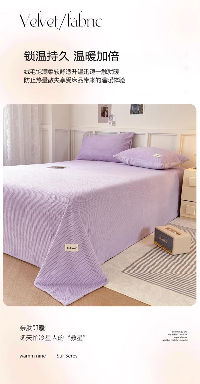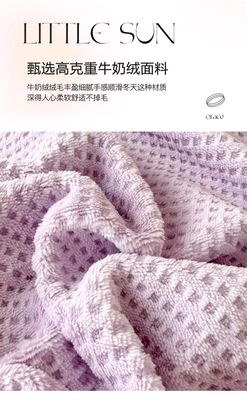 • 91家纺网 家纺一手货源 找家纺 眠博士 2025新款A类华夫格剪花牛奶绒床单多功能盖毯 剪花床单-紫色