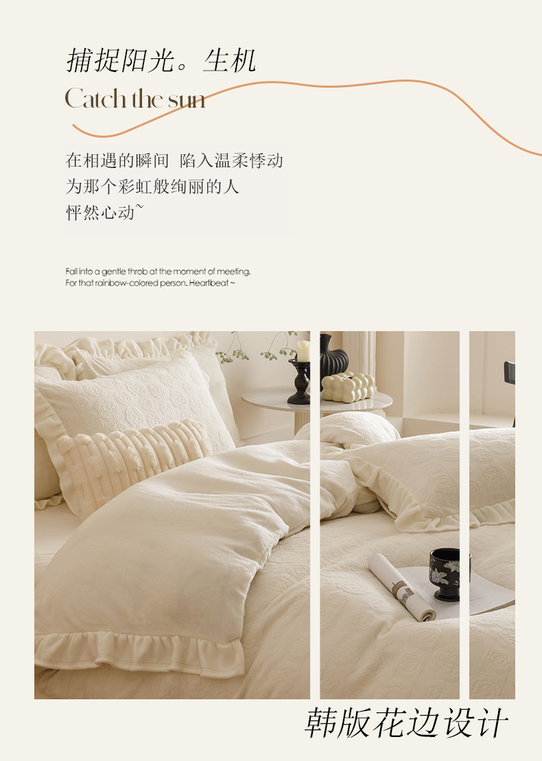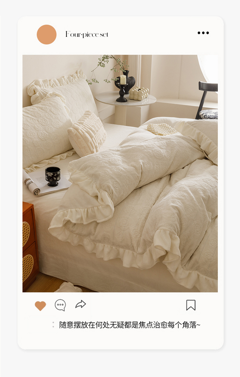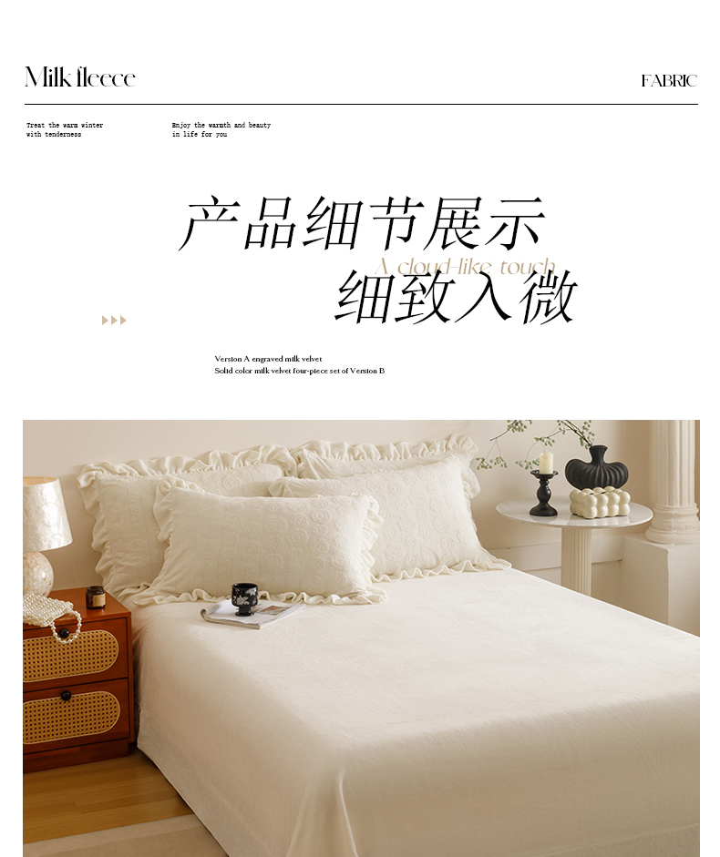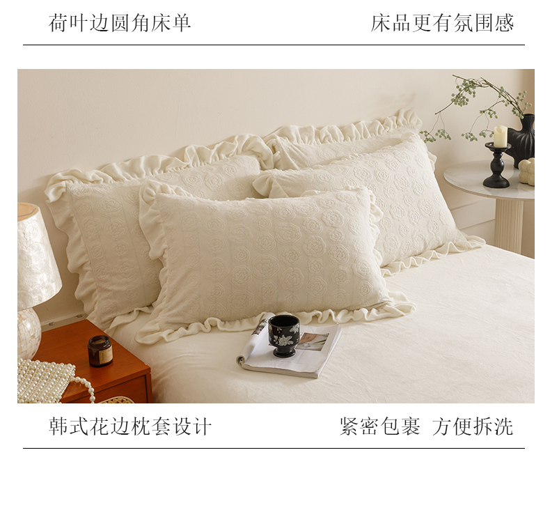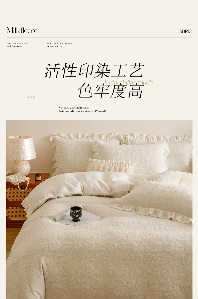 忆生活家纺 2025秋冬韩版公主风雕花牛奶绒四件套-小香茶花系列 小香茶花-象牙白
