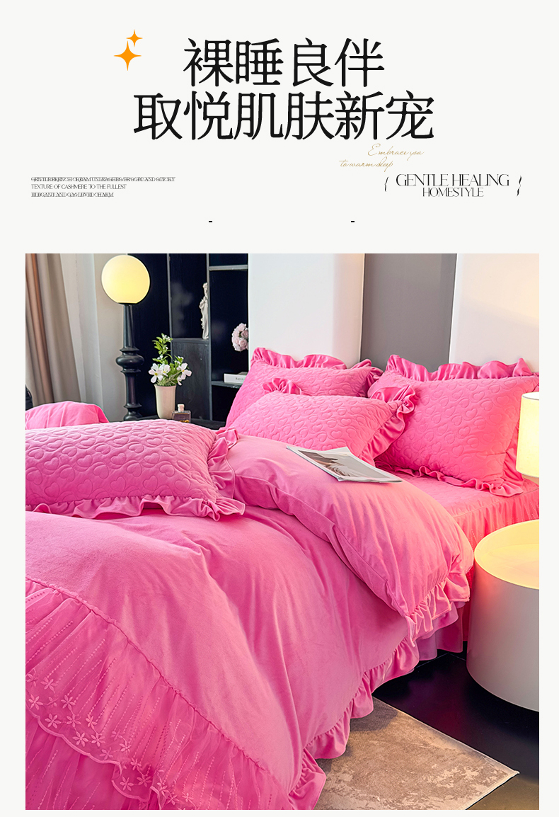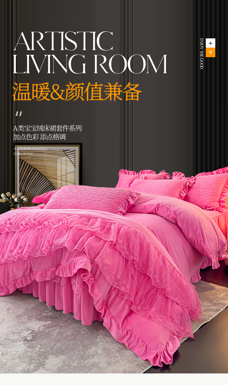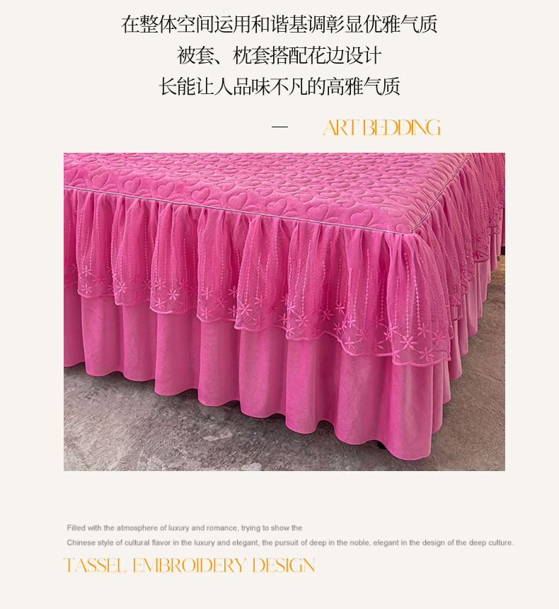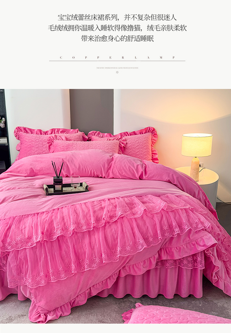 当前位置: 91家纺网 > 商品网购 > 床品套件 > 四件套 > 其它四件套 > 恒爱家纺 2025新款宝宝绒紫陌听雪床裙款四件套终版 玫瑰红