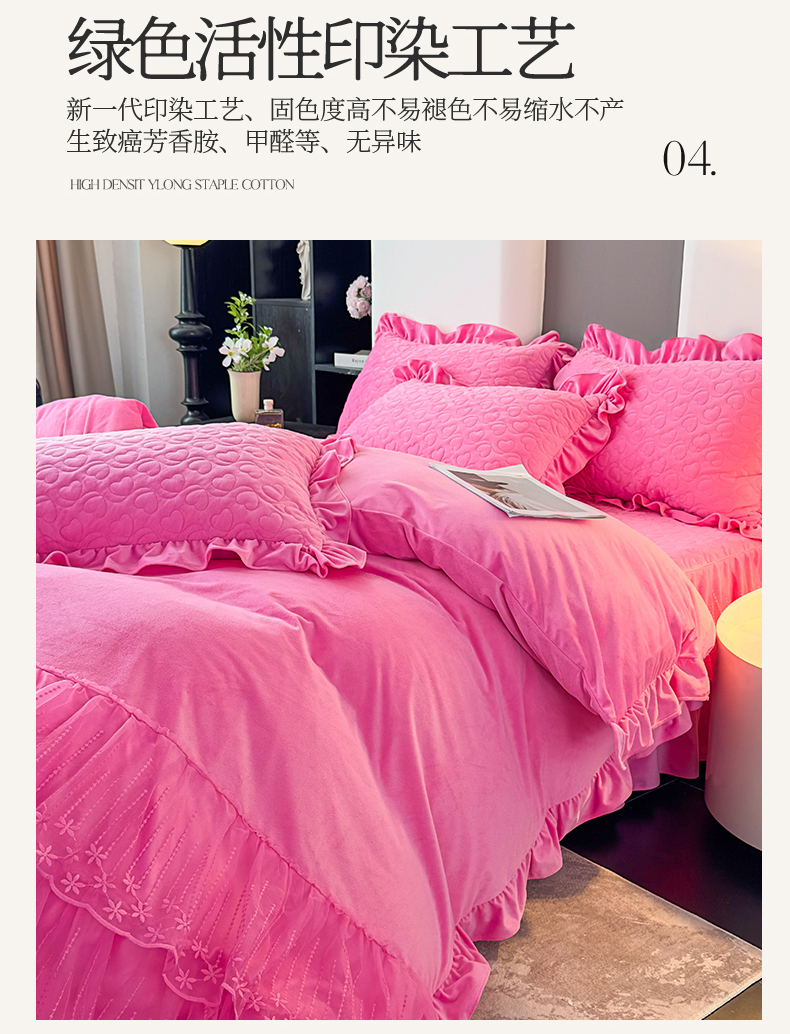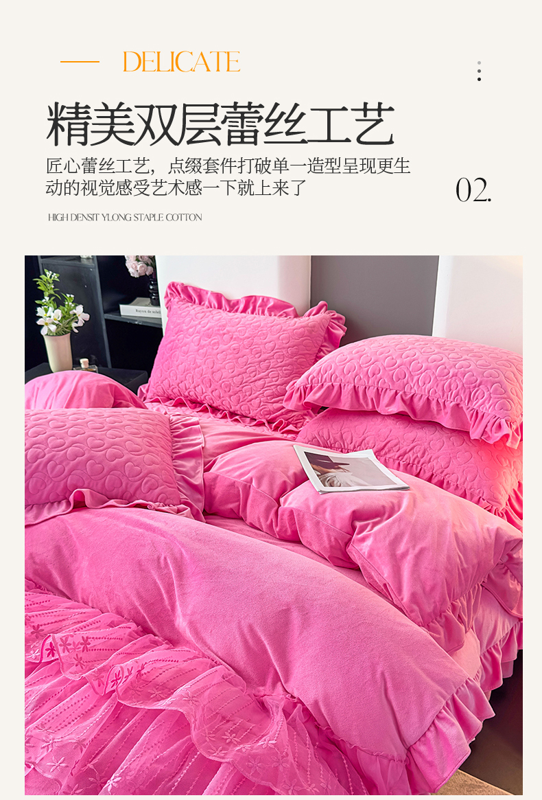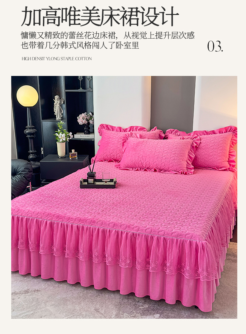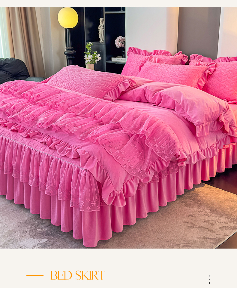 当前位置: 91家纺网 > 商品网购 > 床品套件 > 四件套 > 其它四件套 > 恒爱家纺 2025新款宝宝绒紫陌听雪床裙款四件套终版 玫瑰红