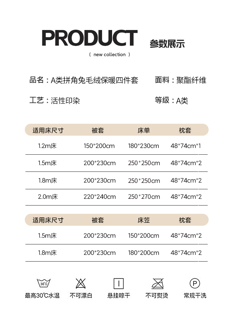 商品名称:启程家纺 2025新款A类加厚兔毛220克牛奶绒拼角四件套 寻彩-咖