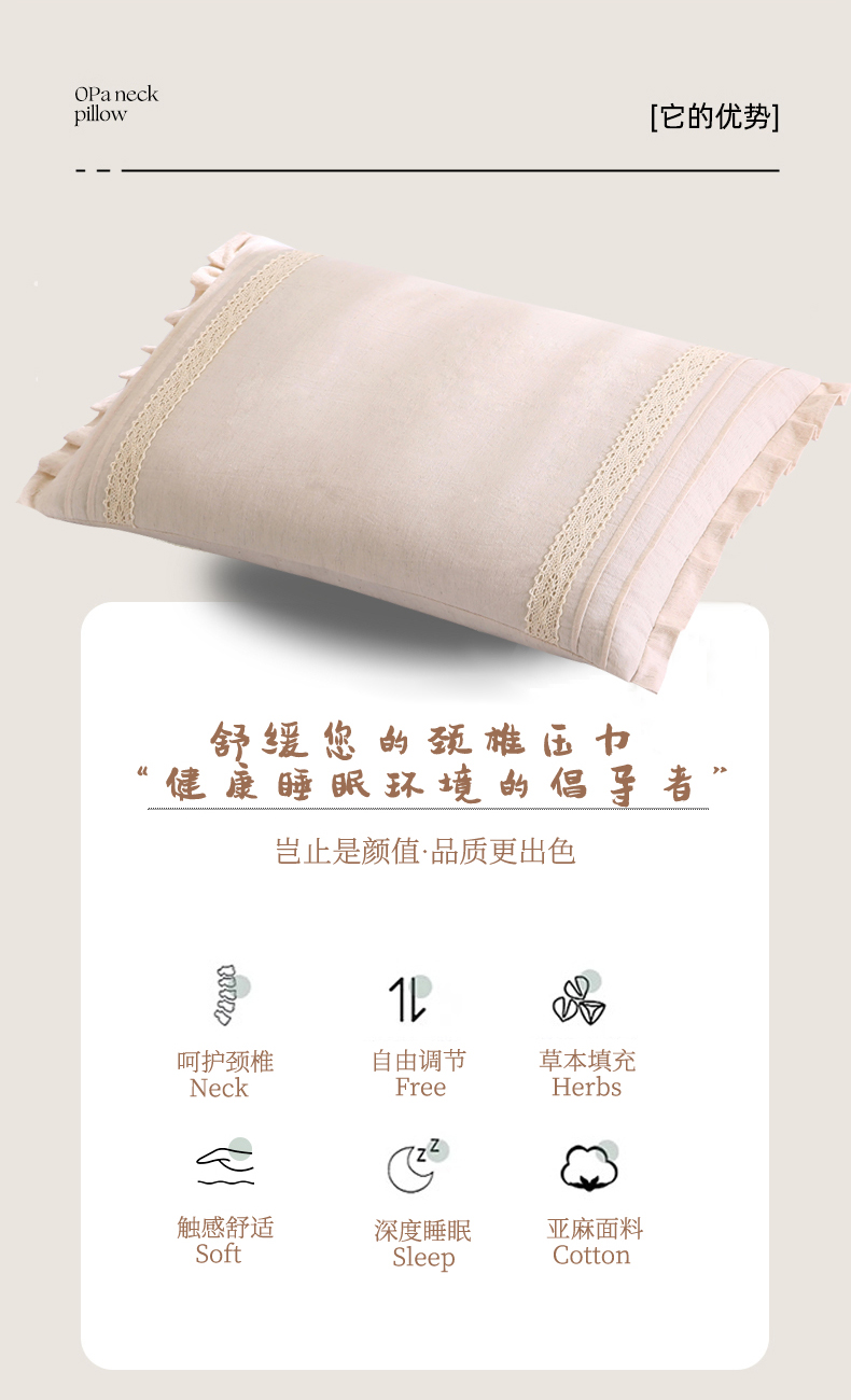 商品名称:金牛枕芯 2025新款棉麻荞麦枕简约系列枕头枕芯全荞麦枕头枕芯 棉麻枕-白色