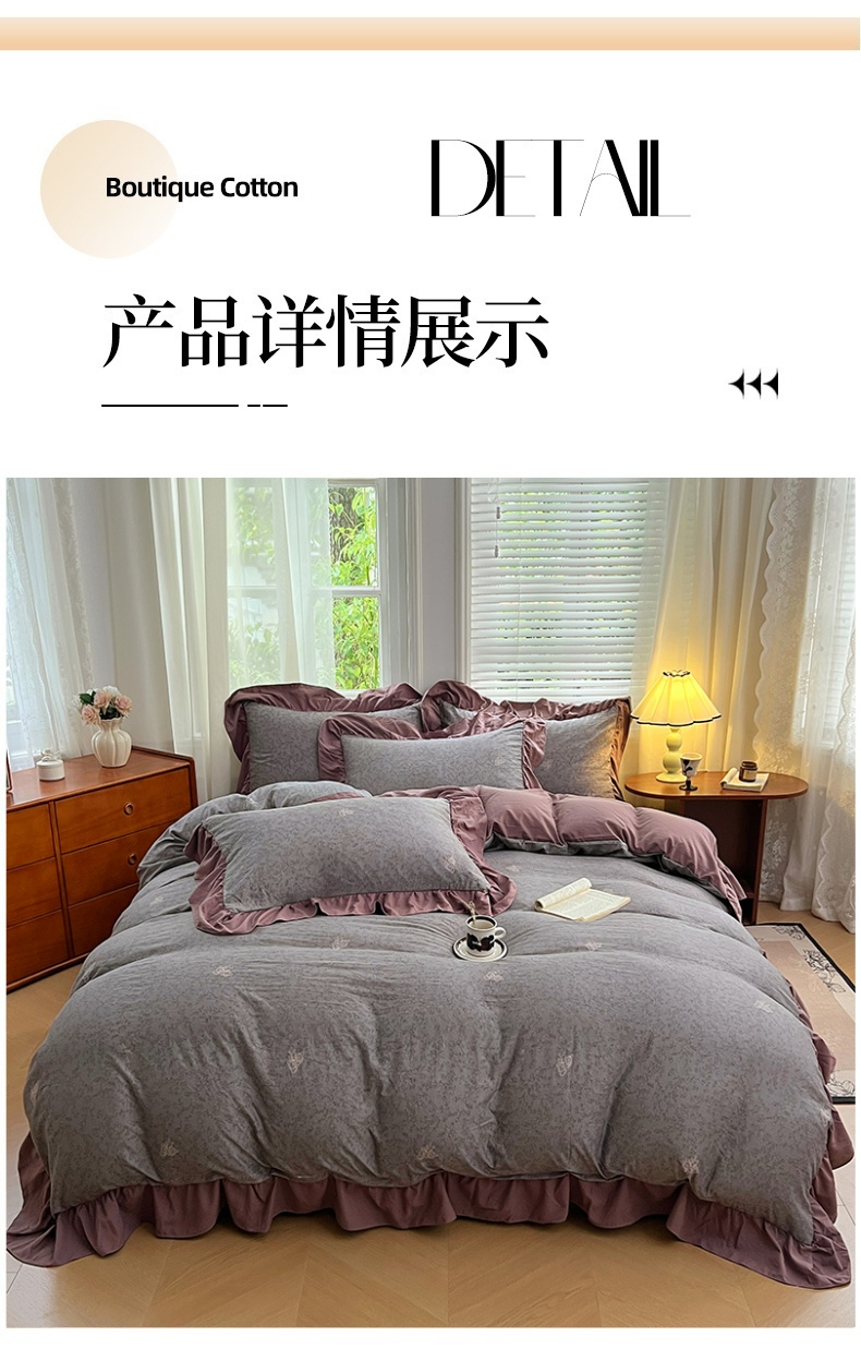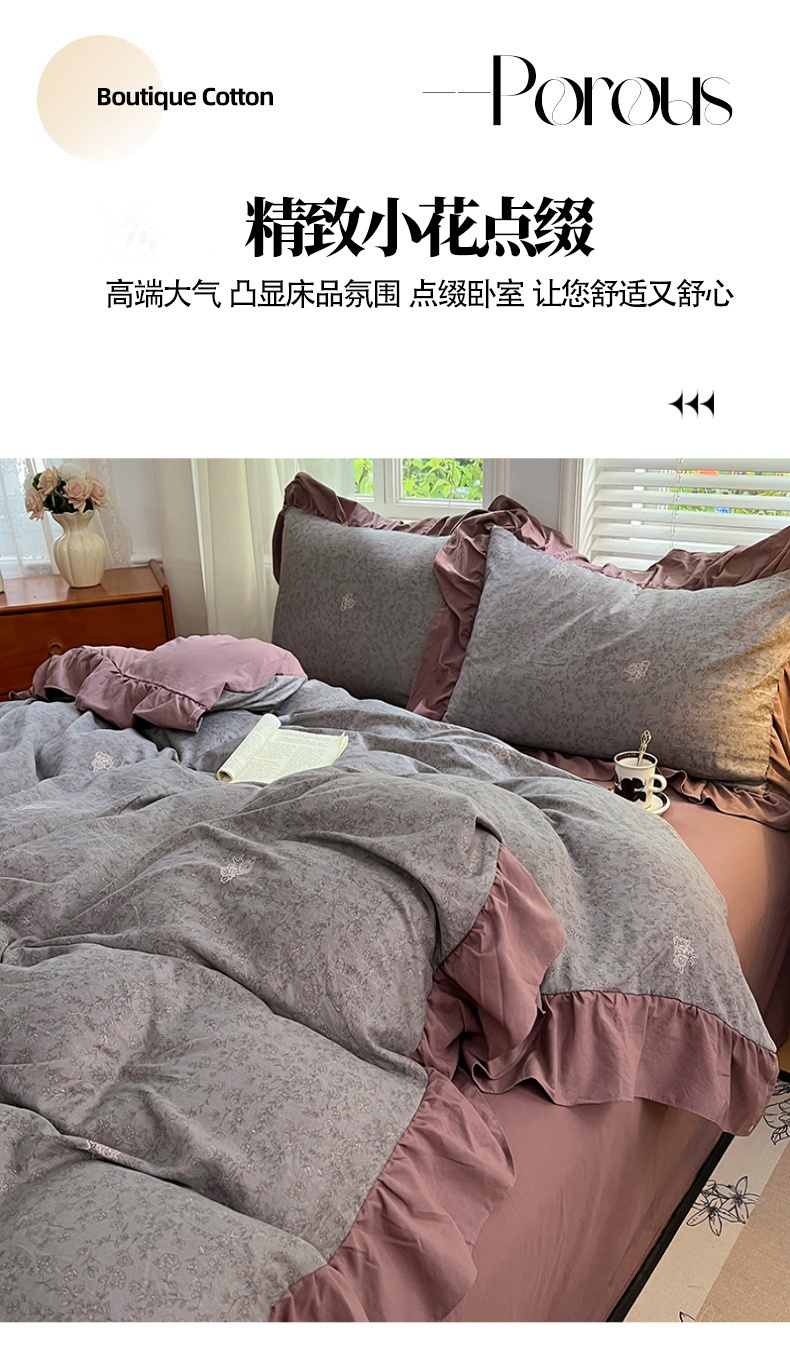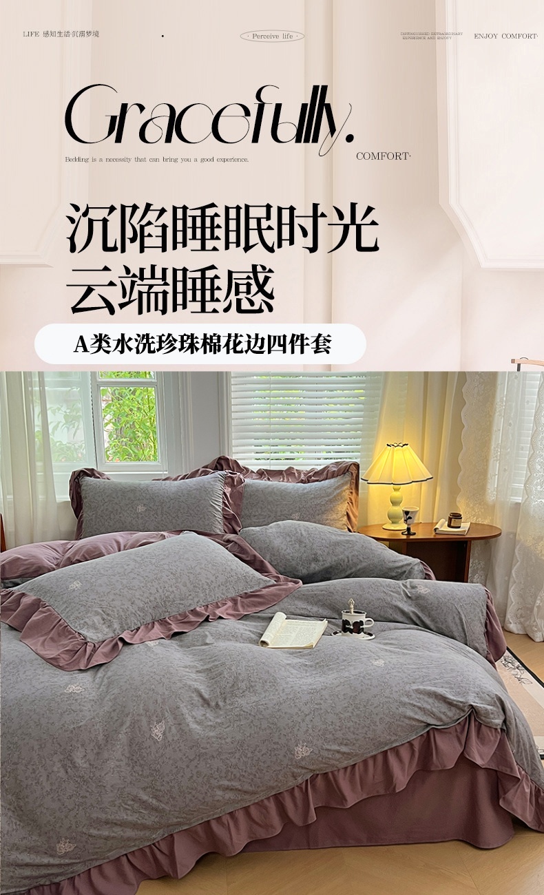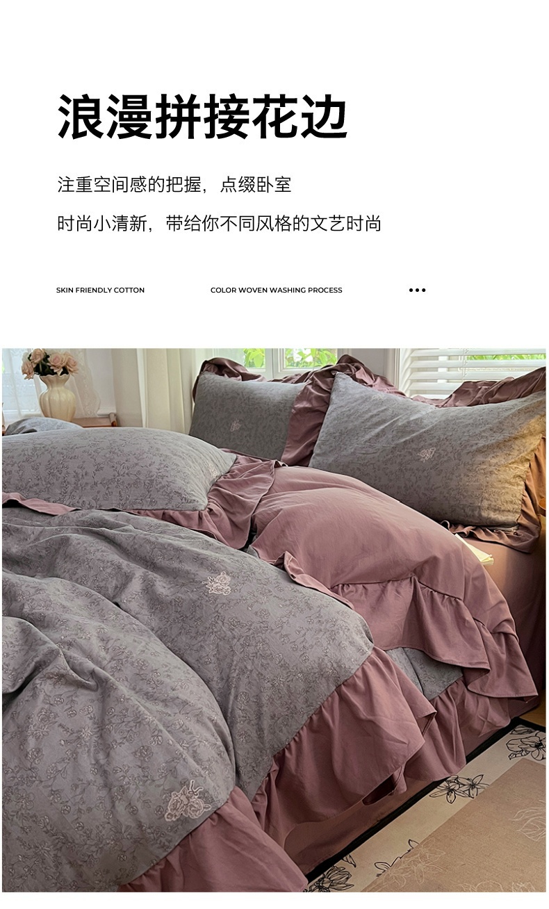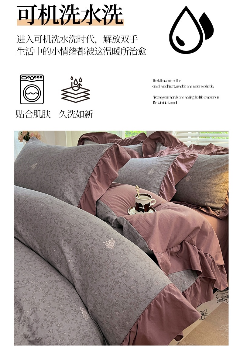 商品名称:梦舒羽 2025新款水洗珍珠棉花边四件套学生宿舍套件复古风四件套 墨染芳华