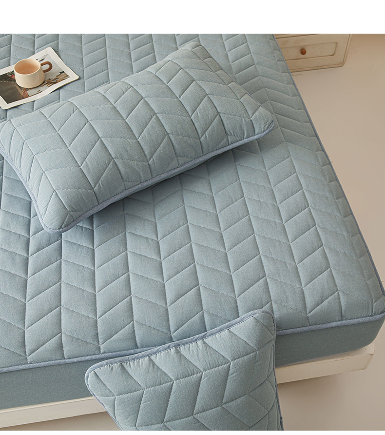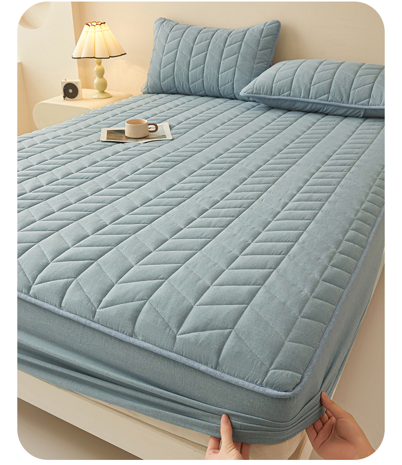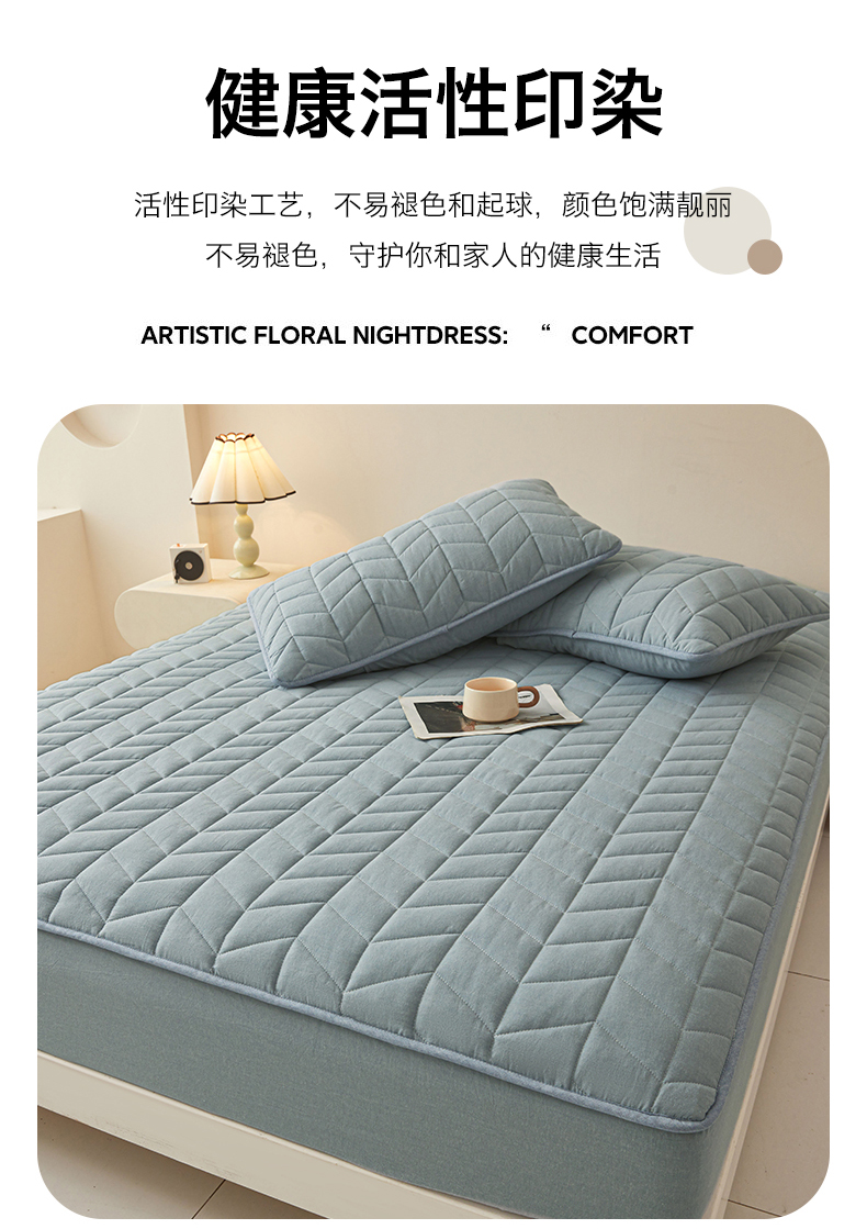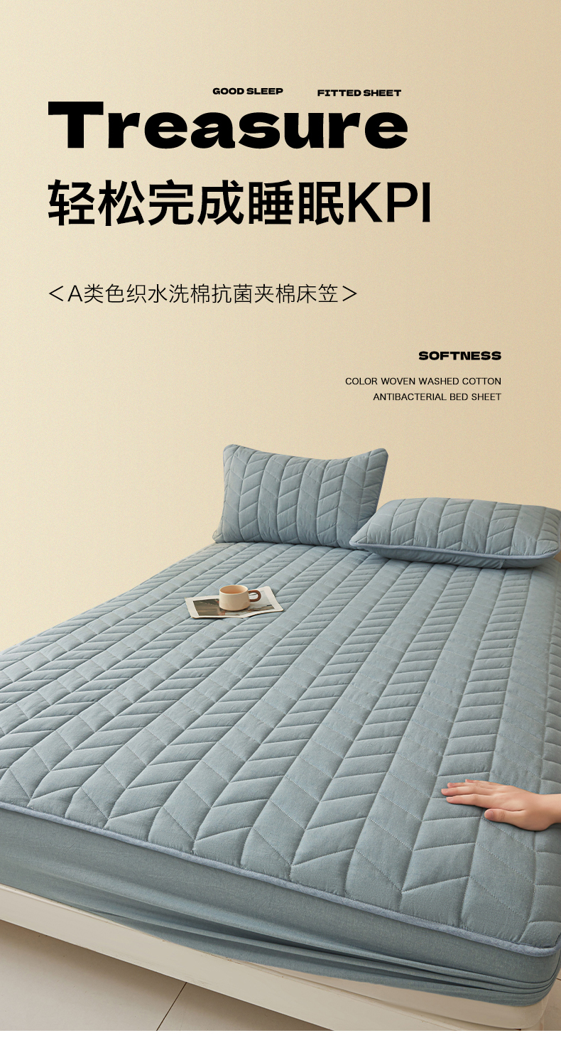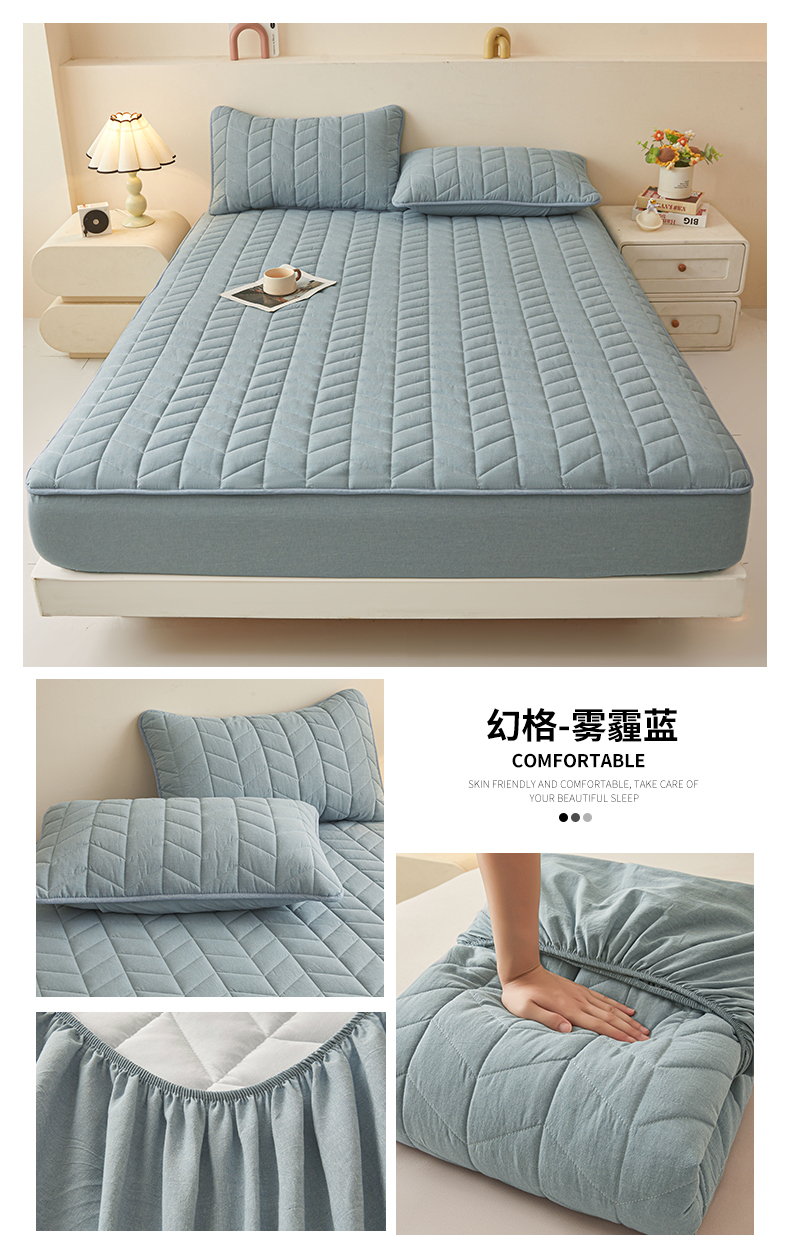商品名称:优眠坊 2025新品全棉色织水洗棉纯棉夹棉抗菌绗缝床笠-幻格系列 幻格-雾霾蓝