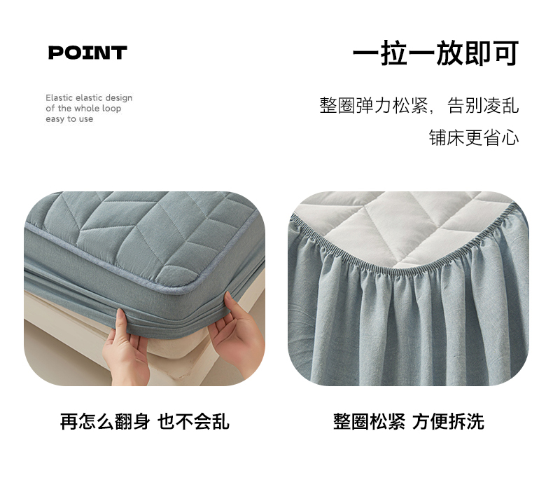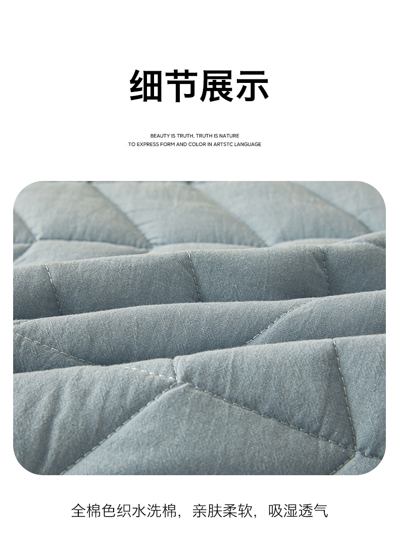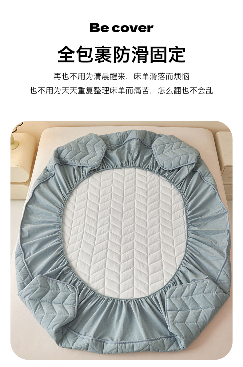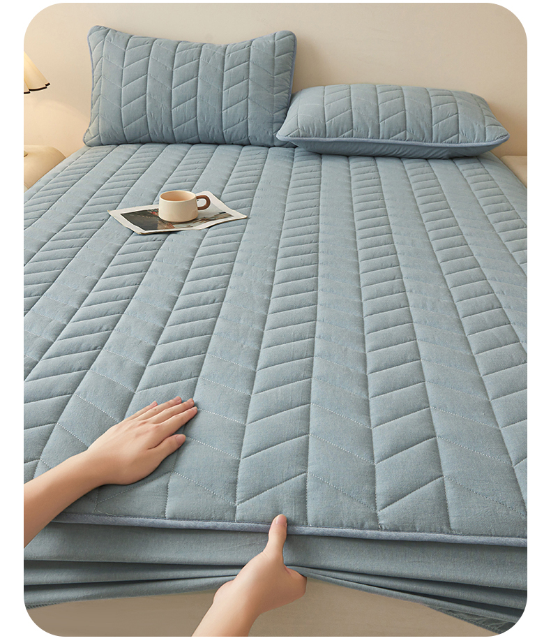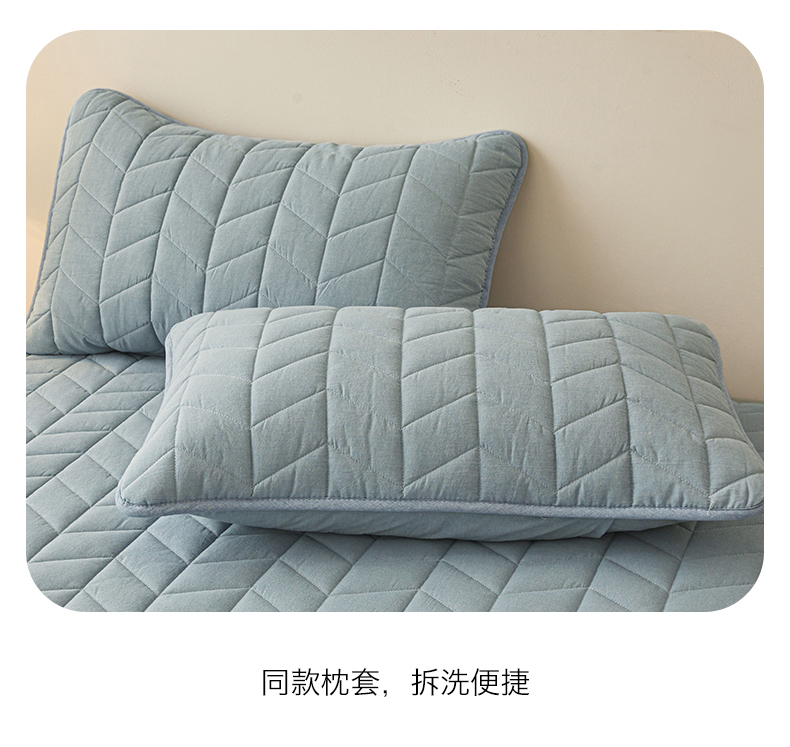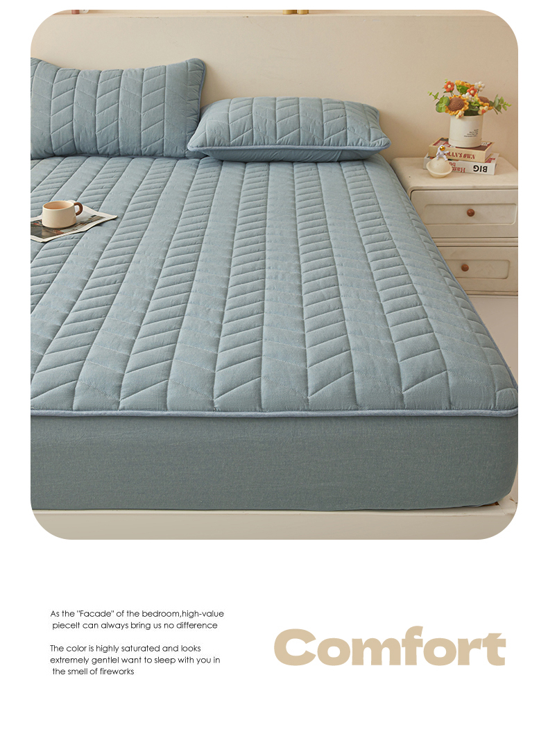 商品名称:优眠坊 2025新品全棉色织水洗棉纯棉夹棉抗菌绗缝床笠-幻格系列 幻格-雾霾蓝