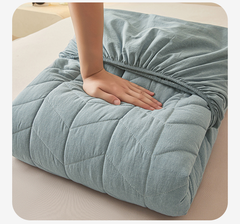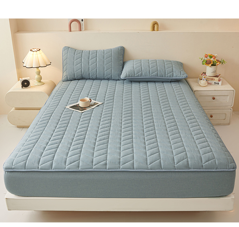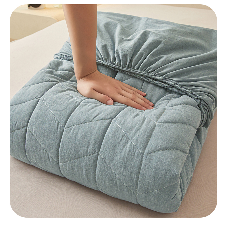 优眠坊 2025新品全棉色织水洗棉纯棉夹棉抗菌绗缝床笠-幻格系列 幻格-雾霾蓝
