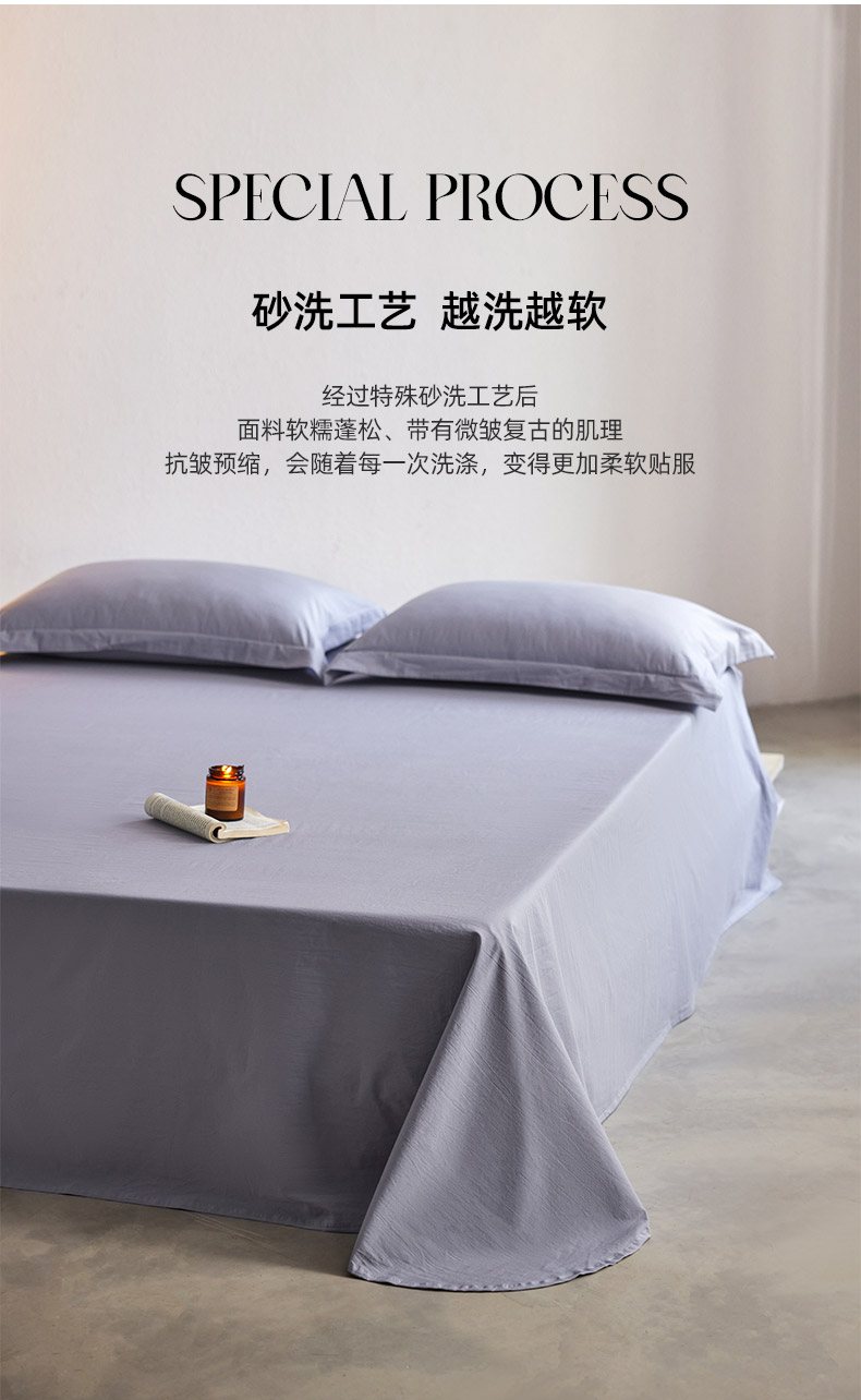 (总)轩和家居 2025新款全棉高支旧感砂洗长绒棉单床单,组合,霁兰色,暮烟灰,墨染灰,落栗棕,薄樱粉,豆沙色,淡黄色,浅云白,青绿色,秋麦色,松石绿,天空蓝,雾海蓝,细雨灰