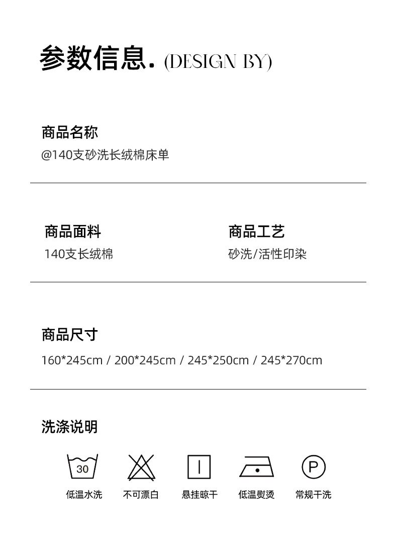 轩和家居 2025新款70S砂洗长绒棉床单 床单组合