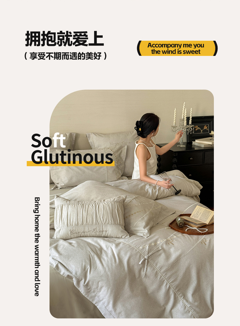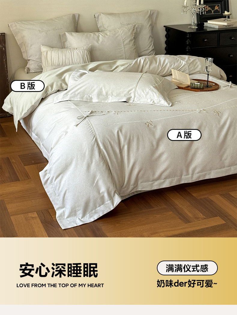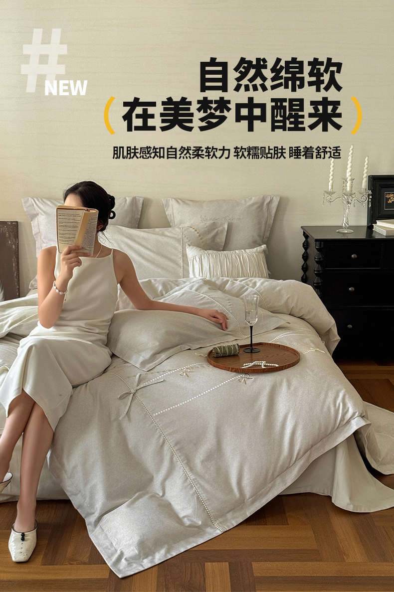 (总)红番天家居馆 (控价)2025新款全棉云柔棉磨毛+磨毛肌理纹+工艺款四件套-珠光(每款供货价的基础上一切活动券后+100),珠光 初秋,珠光 素采,珠光-盈盈