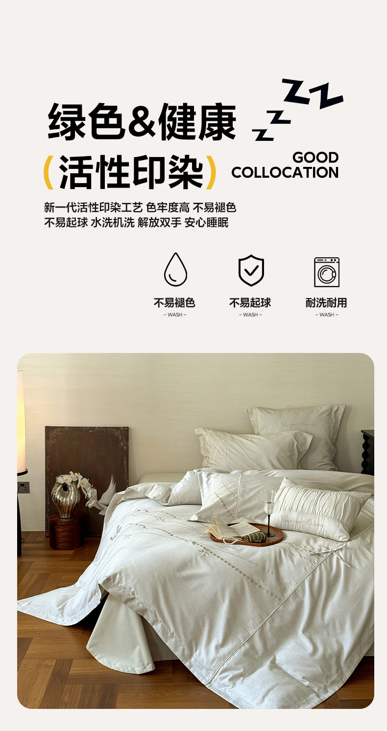 商品名称:红番天家居馆 (控价)2025新款全棉云柔棉磨毛+磨毛肌理纹+工艺款四件套-珠光(每款供货价的基础上一切活动券后+100) 珠光 初秋
