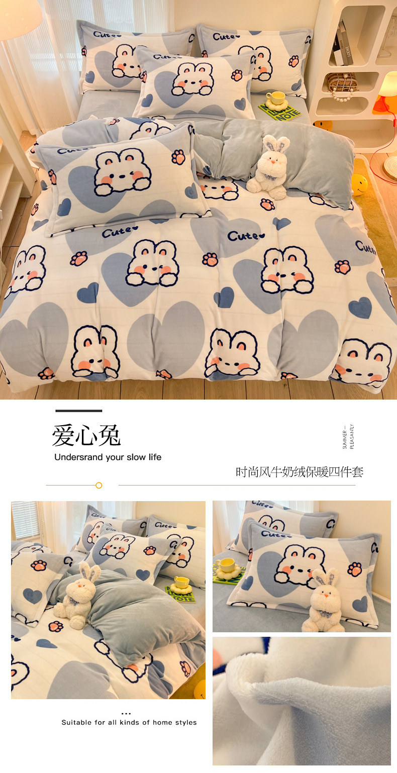 当前位置: 91家纺网 > 商品网购 > 床品套件 > 四件套 > 牛奶绒四件套 > 倾慕 2026新款高克重时尚印花牛奶绒系列 爱心兔