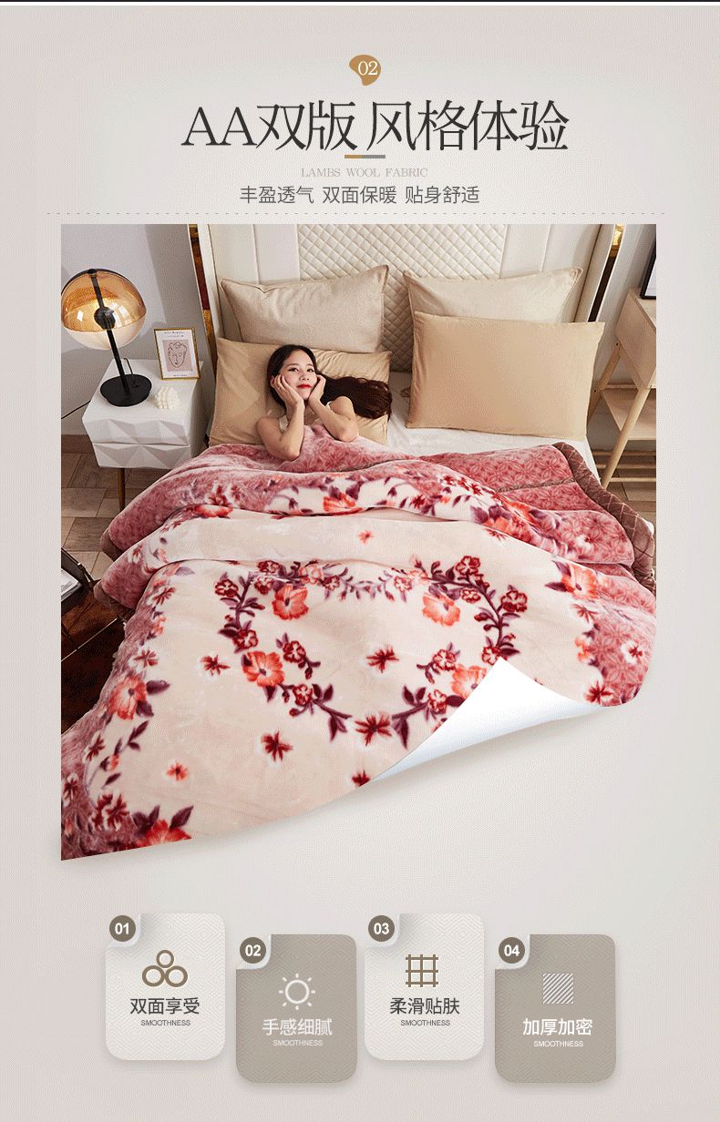 当前位置: 91家纺网 > 商品网购 > 毛毯休闲毯绒毯 > 毛毯 > 雅诗帛 【2025年新款】双层加厚冬季毛毯拉舍尔毛毯加绒特厚婚庆结婚送礼毯子盖毯珊瑚绒 心花怒放