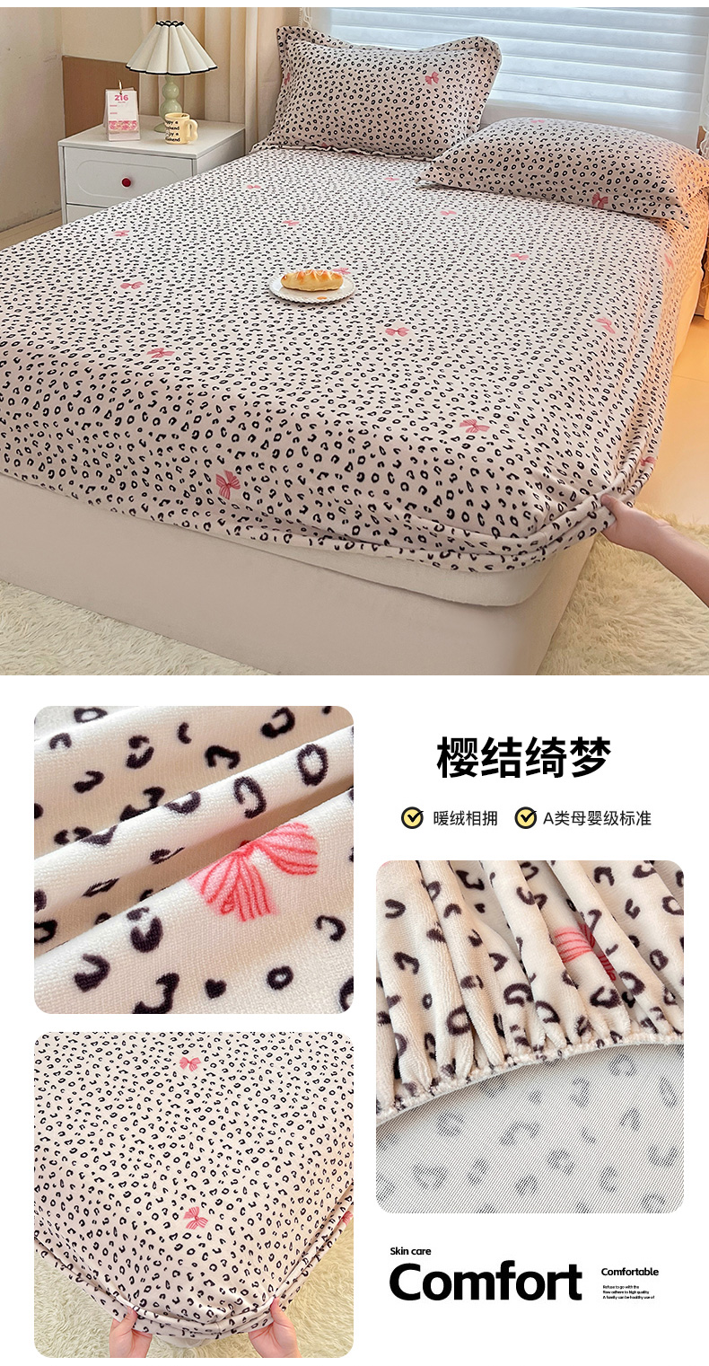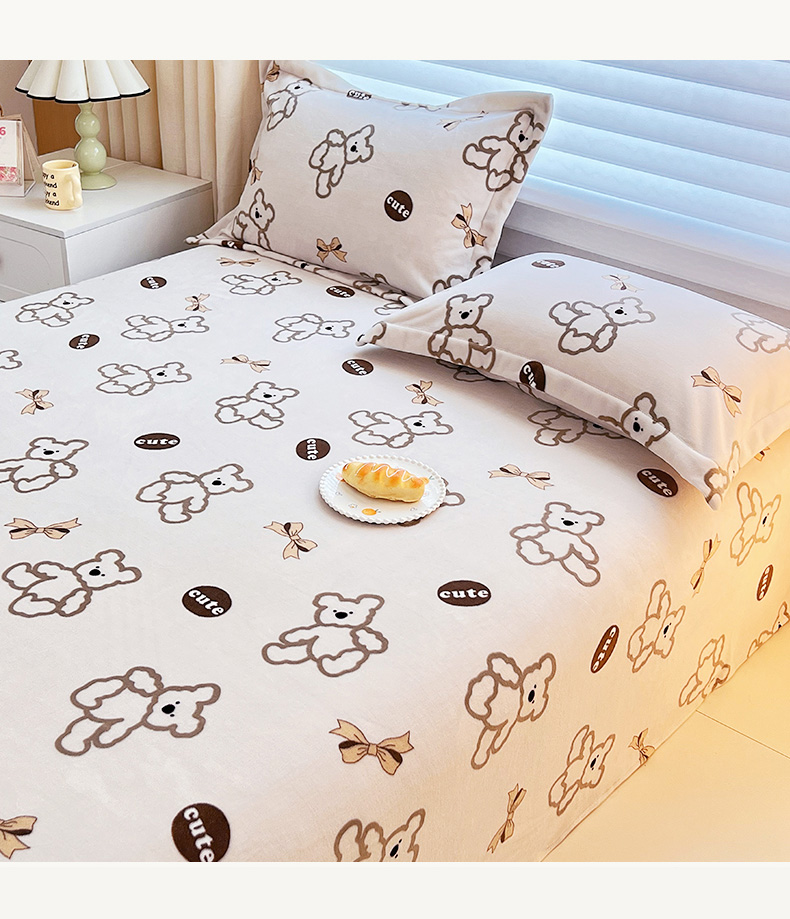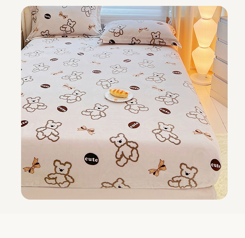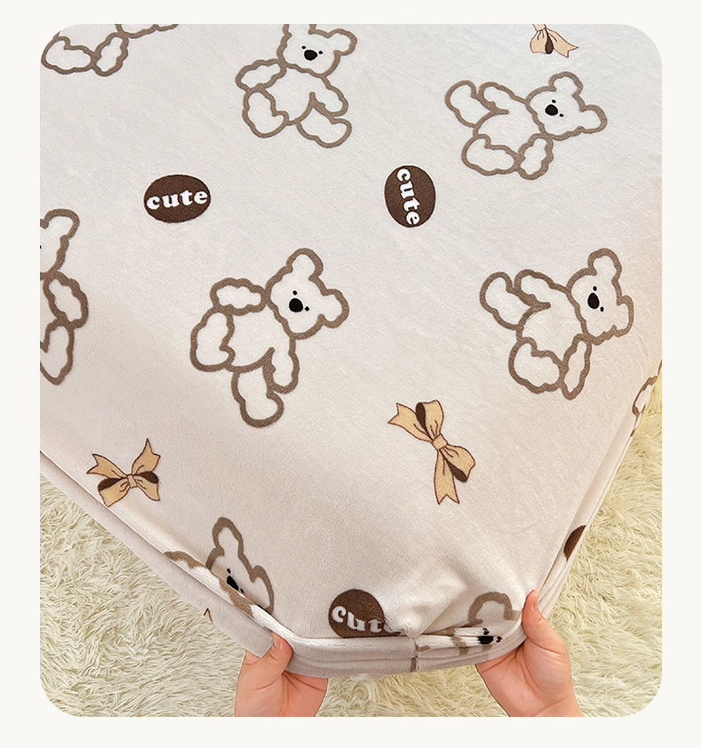 锦罗绣 2025新款230克牛奶绒印花单床笠 奶香小熊