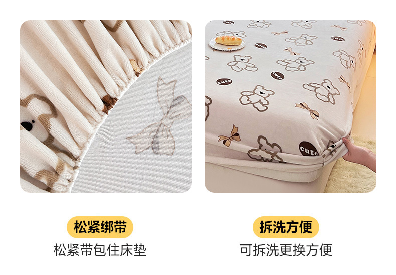 当前位置: 91家纺网 > 商品网购 > 床上用品 > 床笠 > 锦罗绣 2025新款230克牛奶绒印花单床笠 奶香小熊