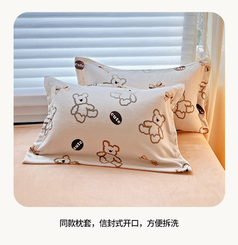 • 91家纺网 家纺一手货源 找家纺 锦罗绣 2025新款230克牛奶绒印花单床笠 奶香小熊