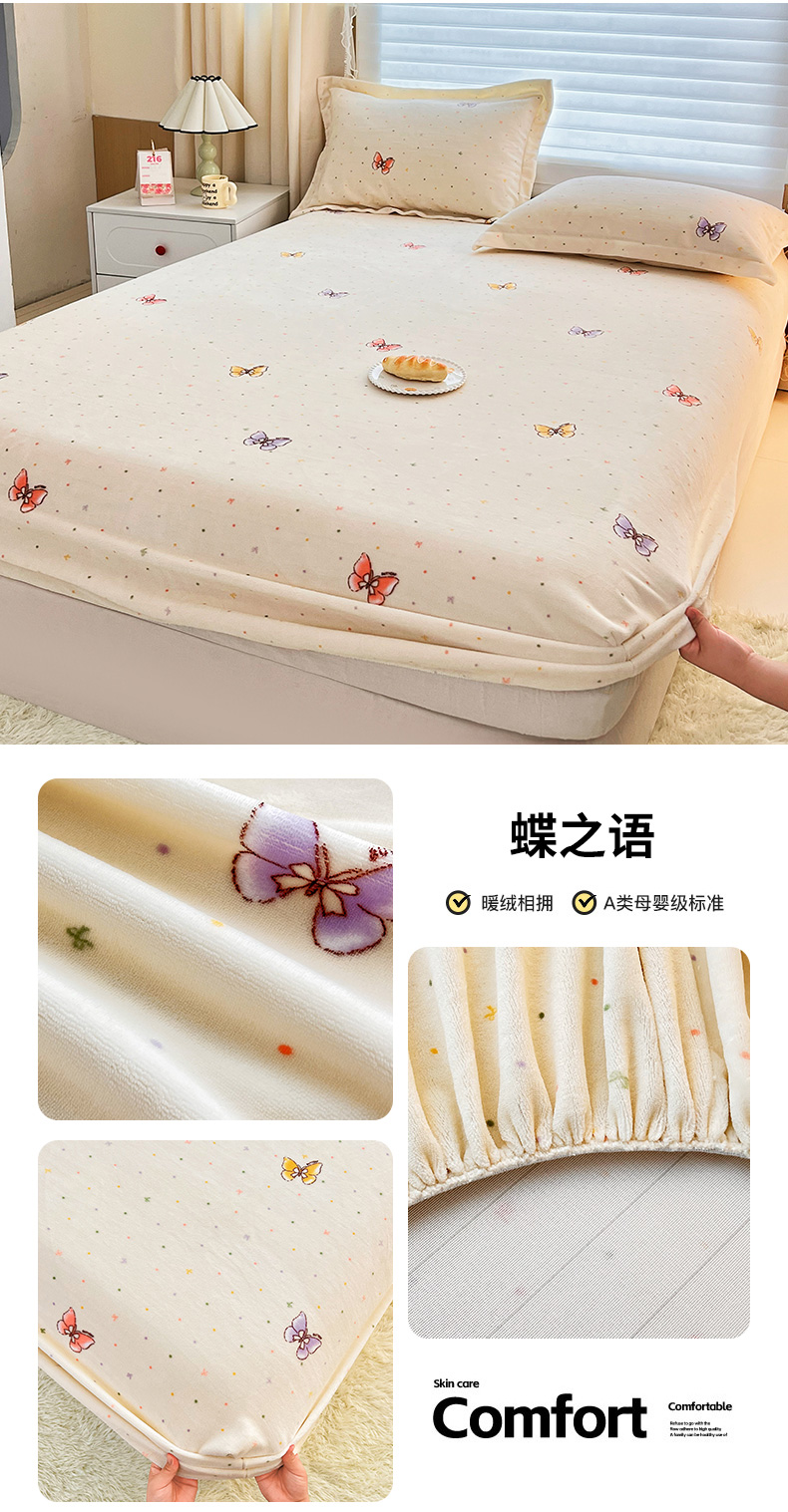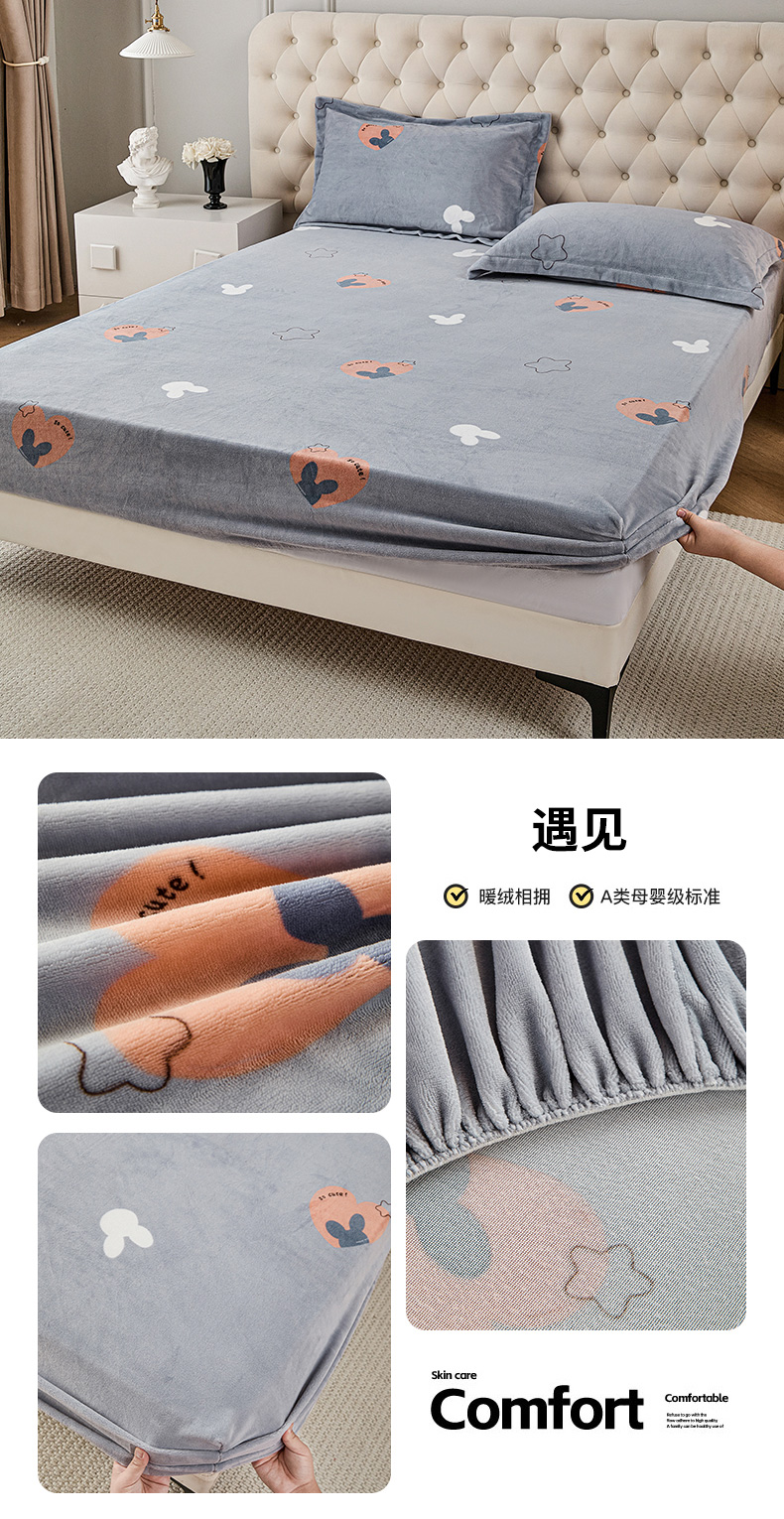 锦罗绣 2025新款230克牛奶绒印花单床笠 春意恋人