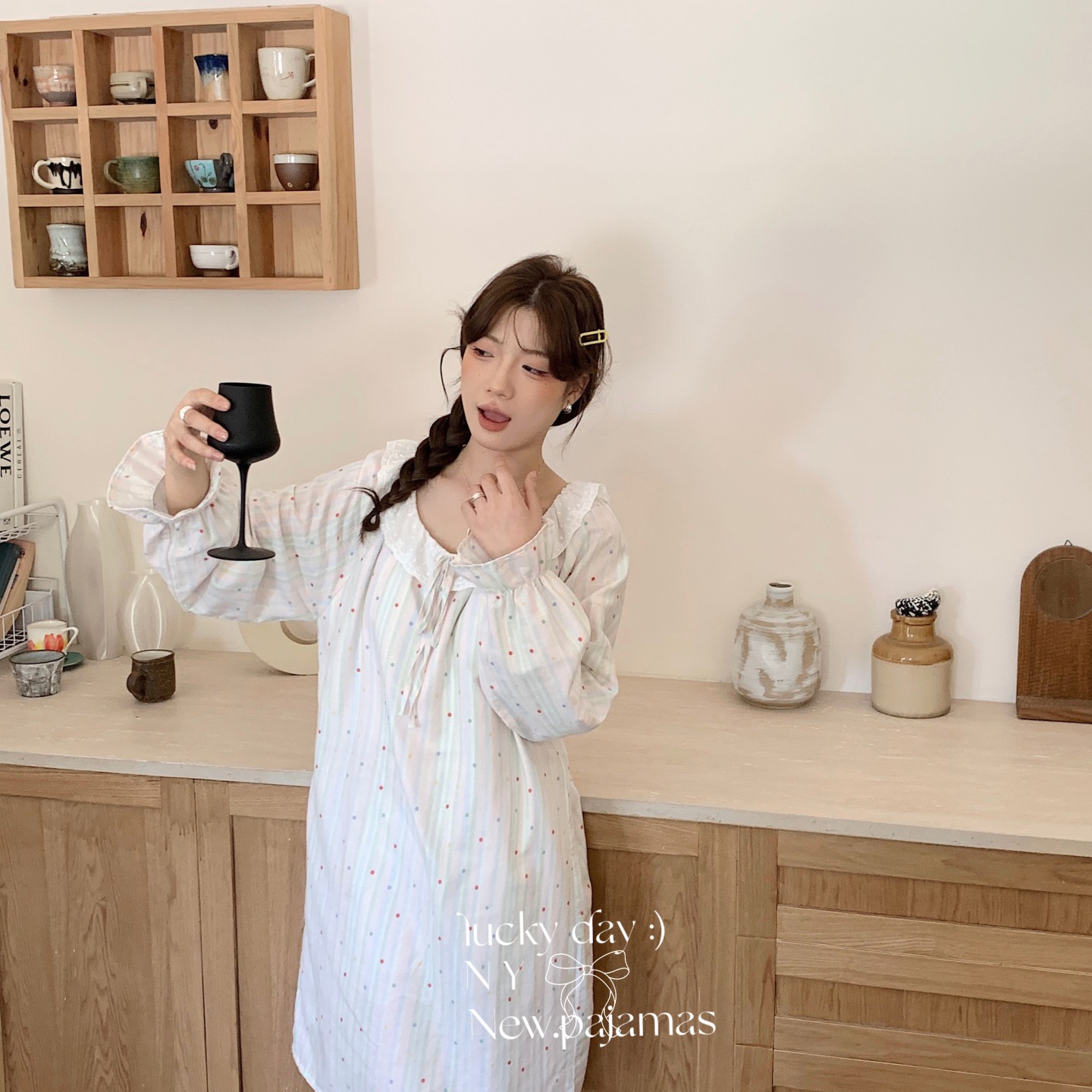当前位置: 91家纺网 > 商品网购 > 居家日用 > 睡衣/家居服套装 > 纽约生活 2025新款系绳胸垫蕾丝裙 奶油条纹