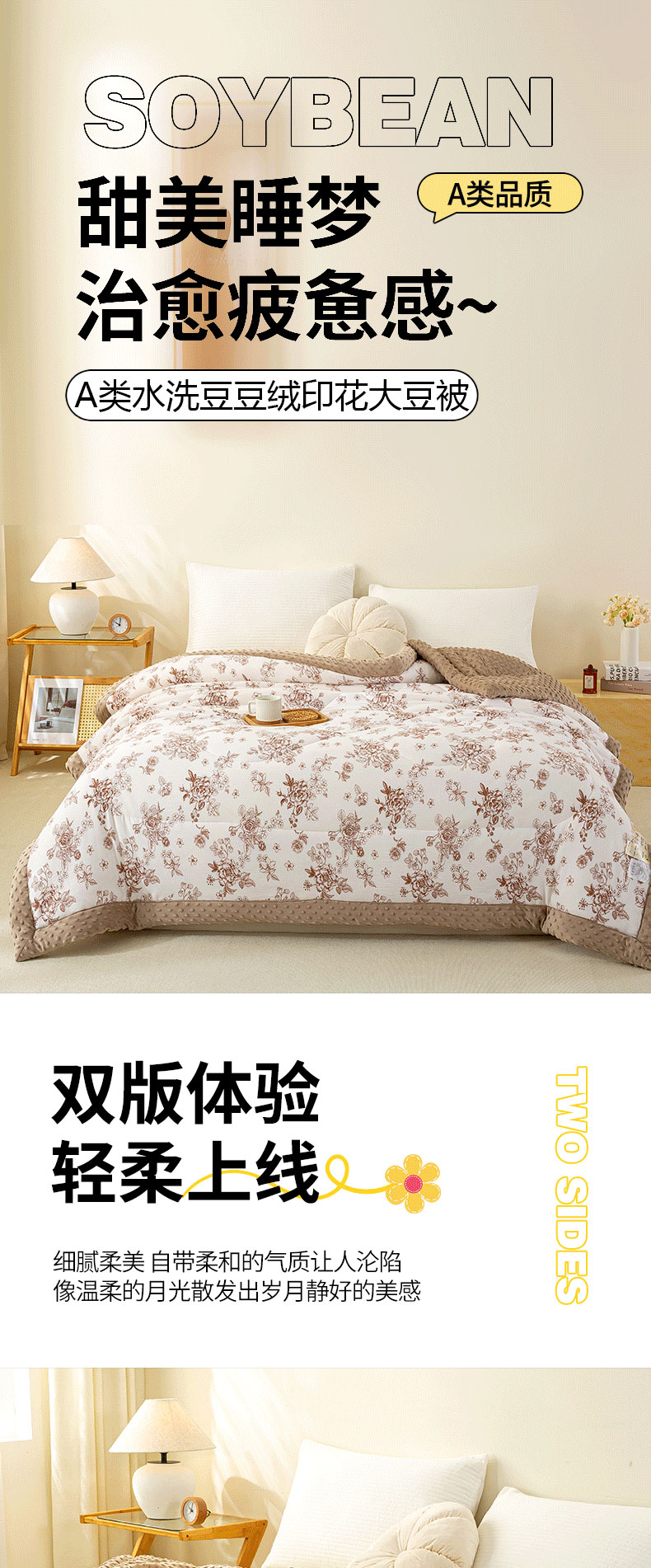 (总)美梦之都 2025新款A类水洗豆豆绒印花大豆被子被芯,繁花似锦,简夕粉,郁金香,玉小格,小熊乐园,兰小格,简夕兰,可爱熊猫,花田紫,花田兔