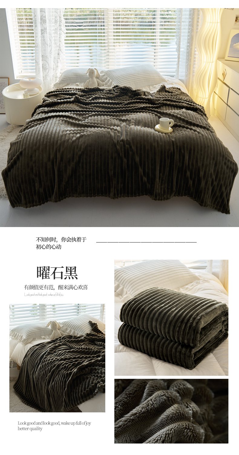商品名称:畅畅家纺 2025新款春秋冬兔毛绒宽抽条纯色软糯亲肤毛毯盖毯 曜石黑